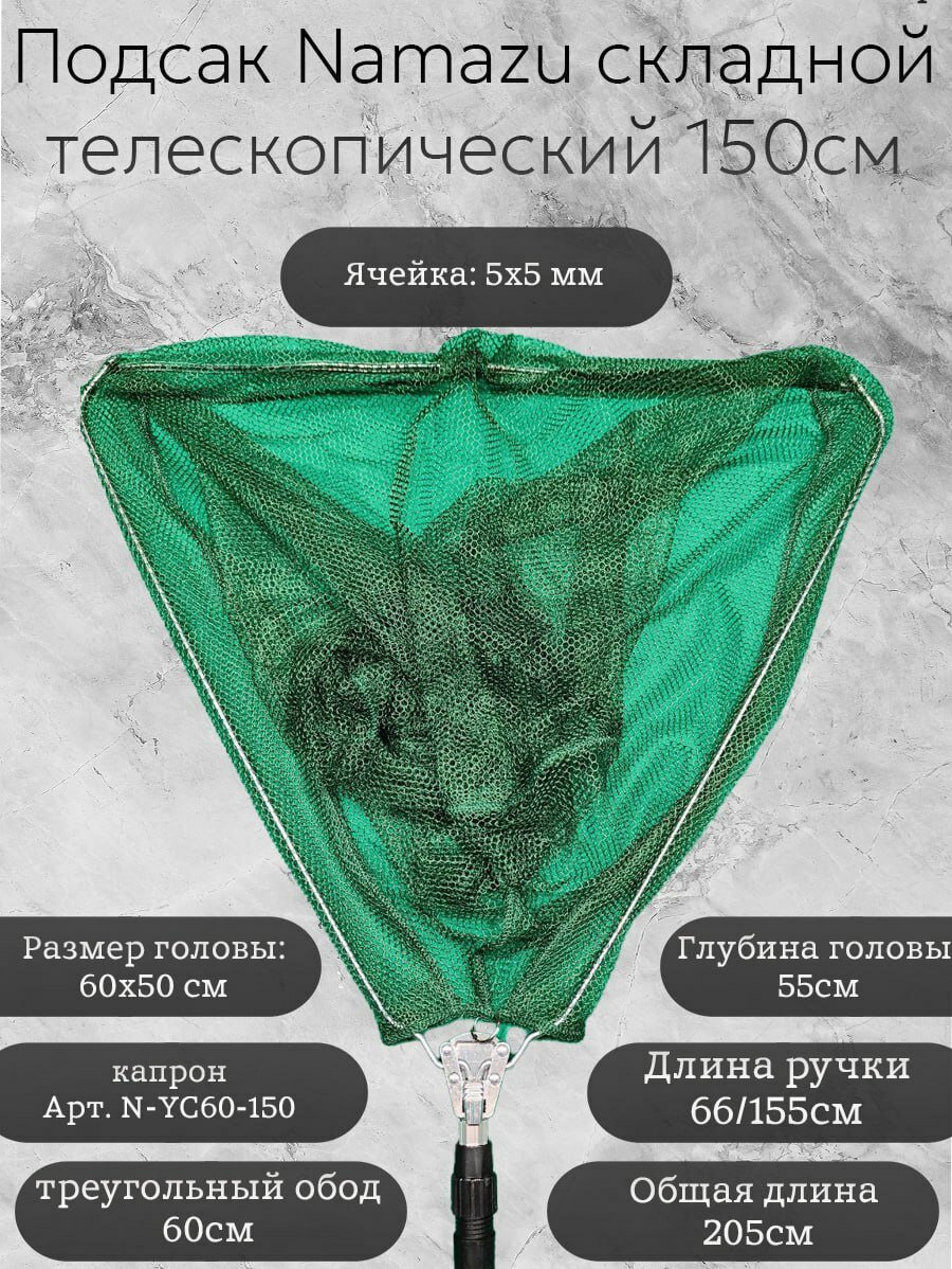Подсак Namazu складной телескопический 150см, треугольный обод 60см, капрон информация: