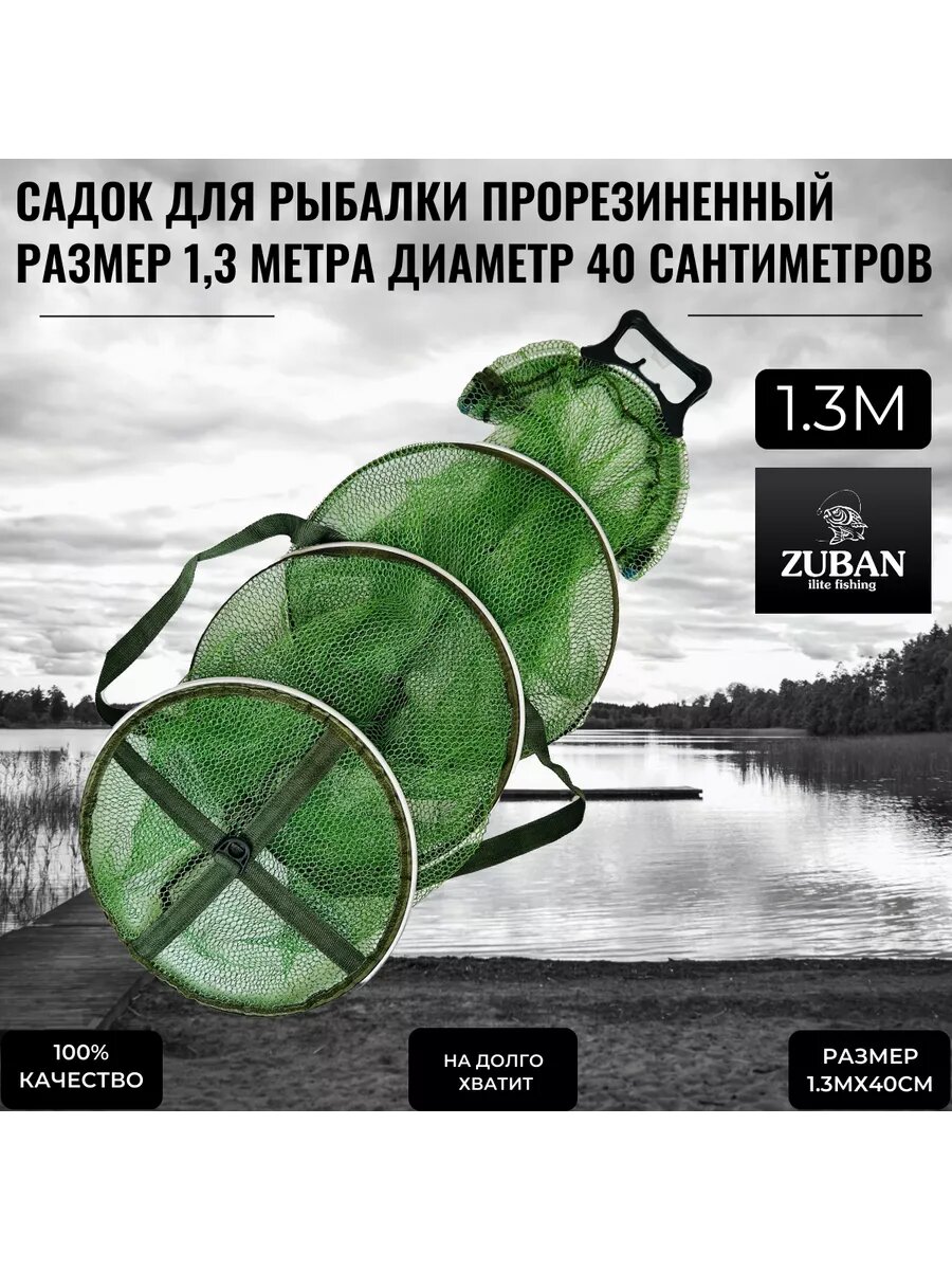 10 цен на Садок рыболовный прорезиненный 1,3м диаметр 40СМ