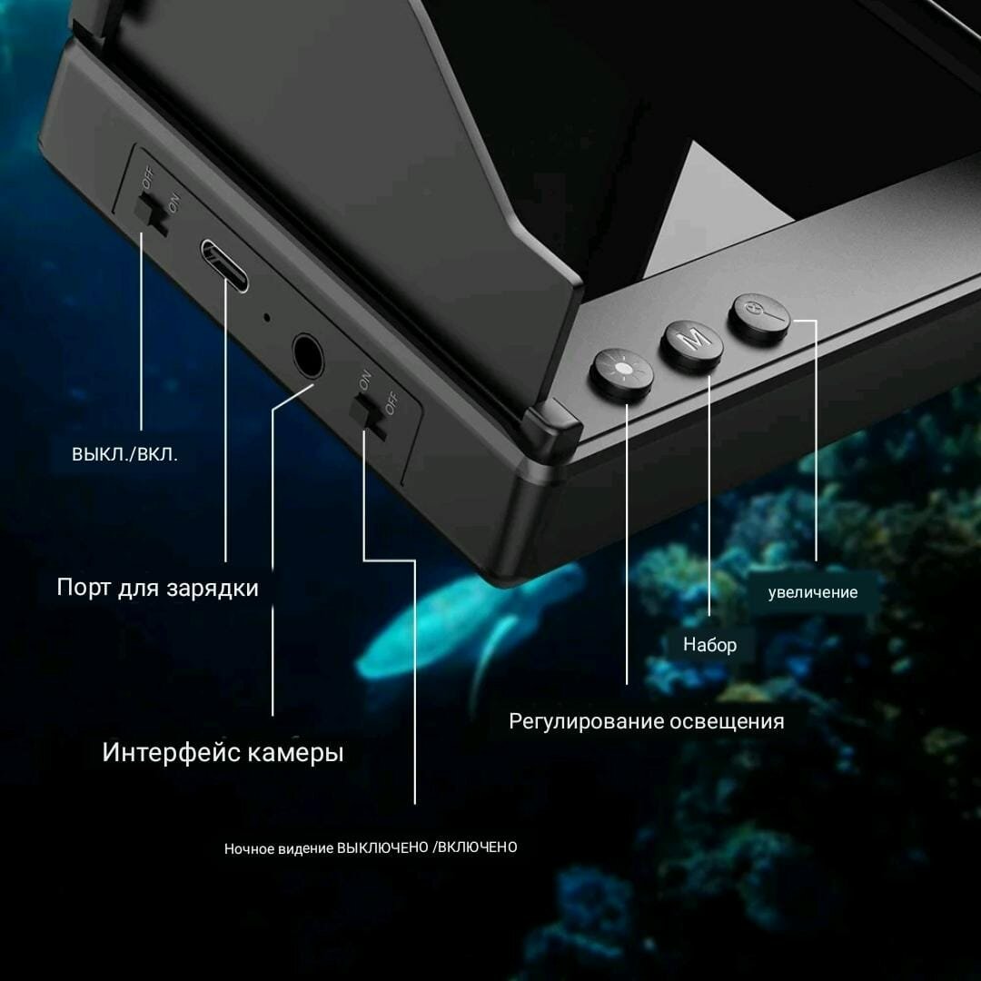 Подводный эхолот, экран 4.3 дюйма, камера 1080p, разрешение 1080р, срок службы 9ч, черный информация:
