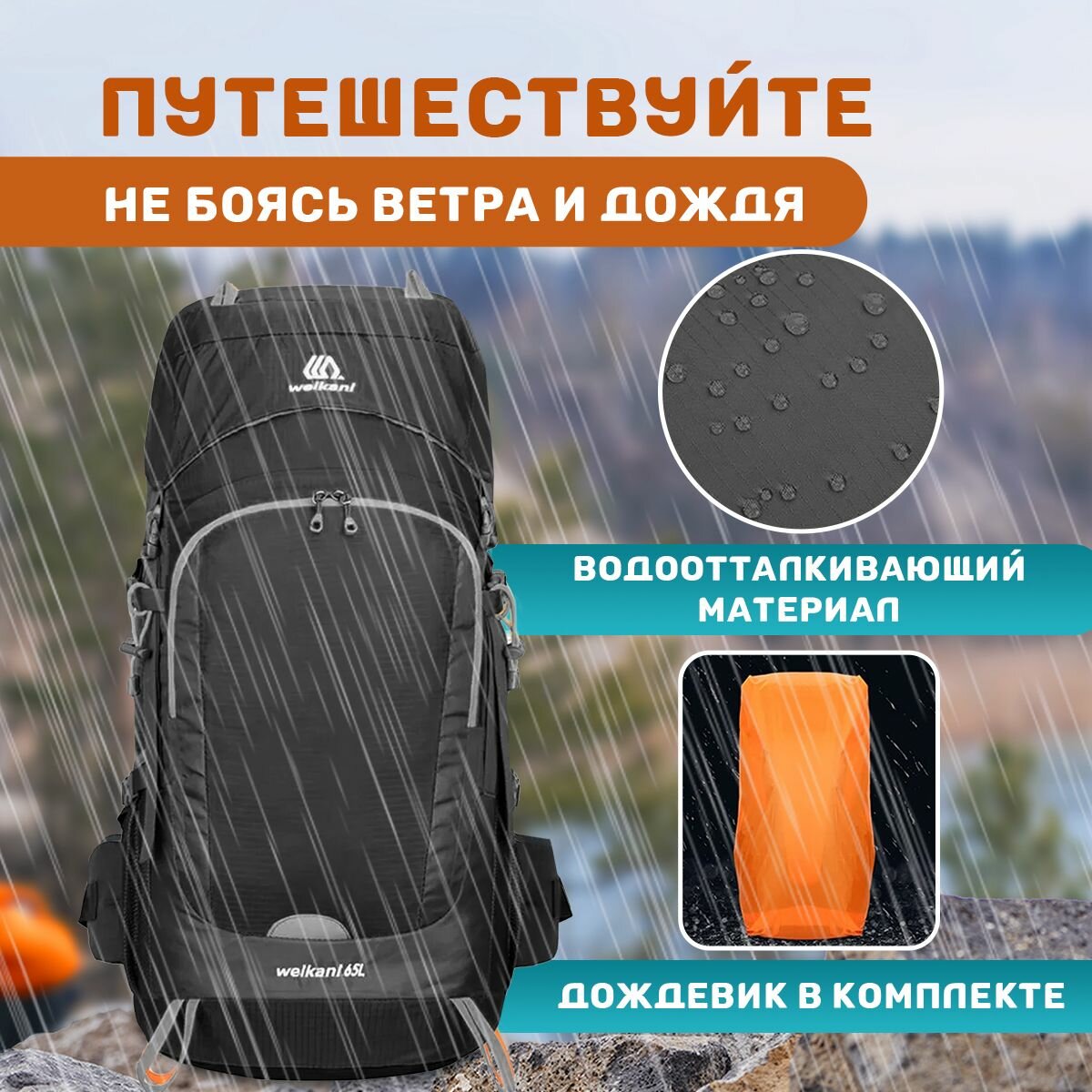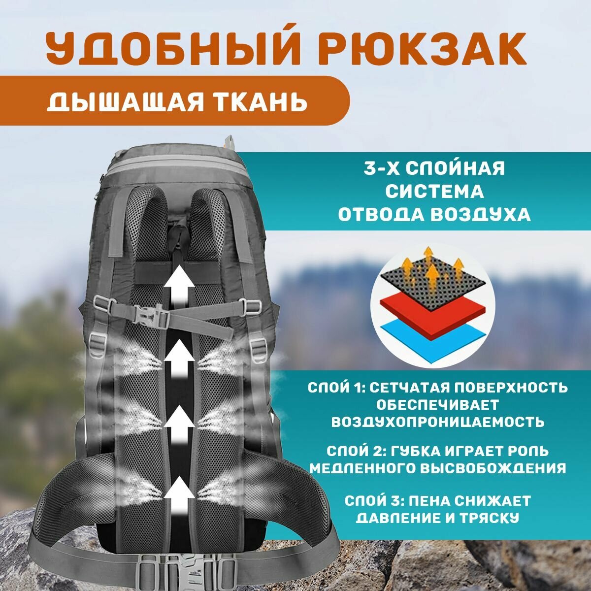 Рюкзак туристический 65л, для похода и города, чёрно-серый информация: