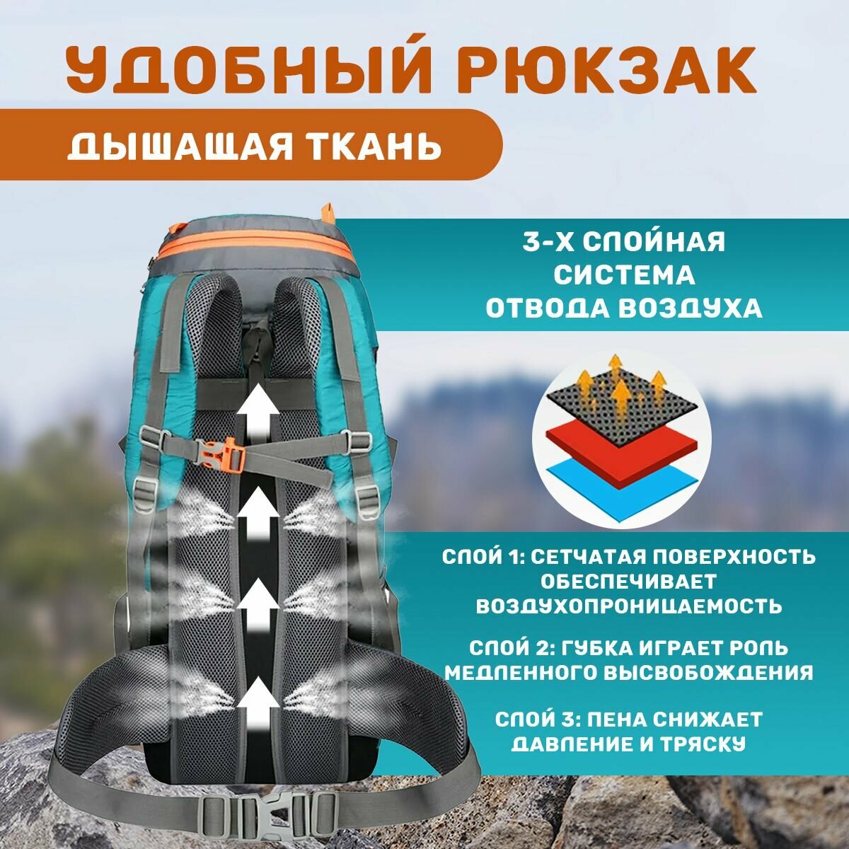 Рюкзак туристический 65л, для похода и города, голубой информация: