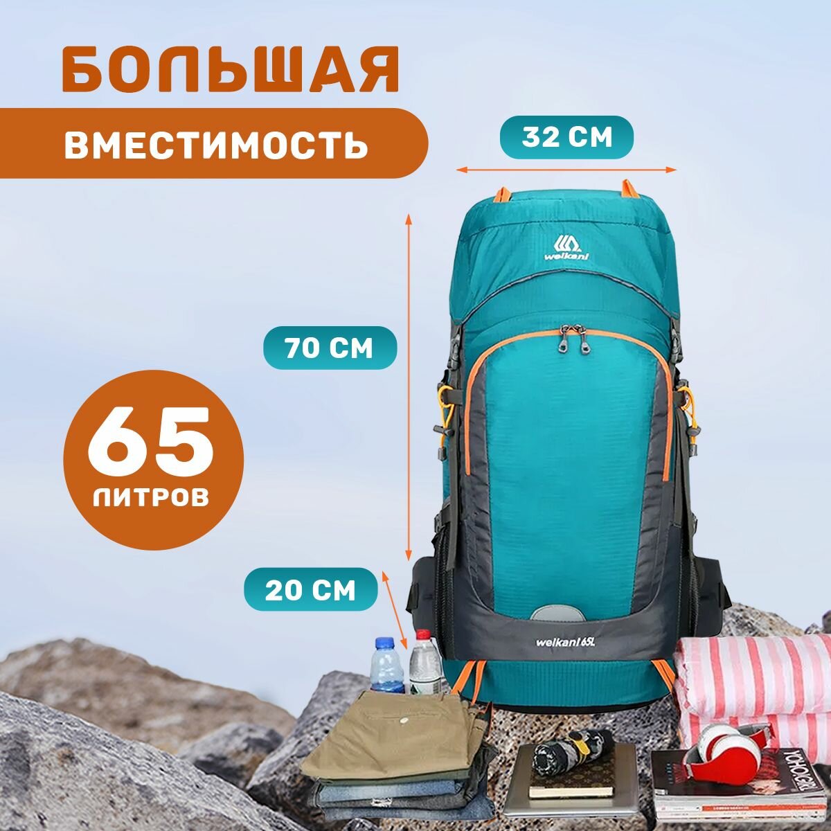 10 цен на Рюкзак туристический 65л, для похода и города, голубой