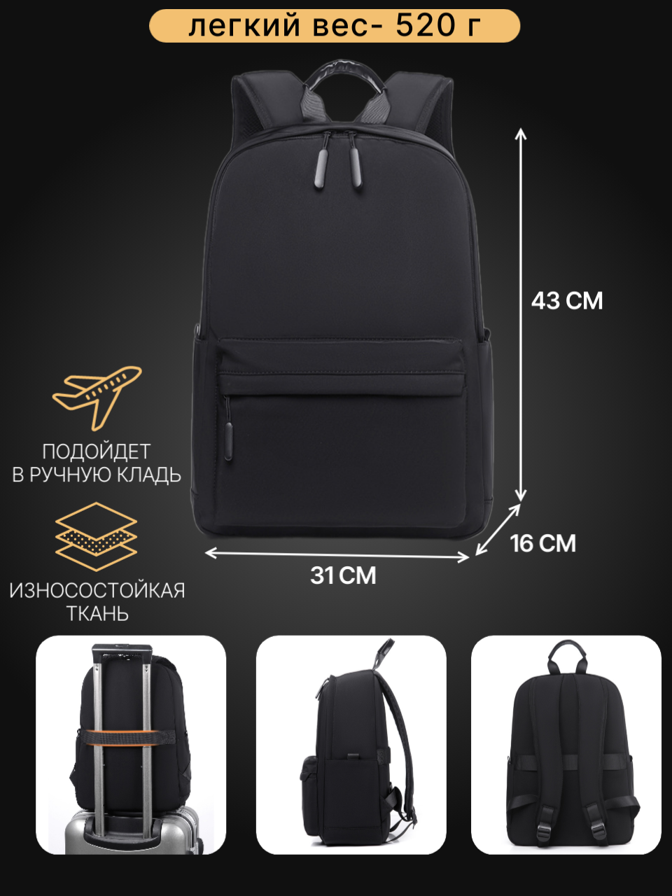 Отзывы на Рюкзак городской из водоотталкивающей ткани 01232901, 31х16х43, черный