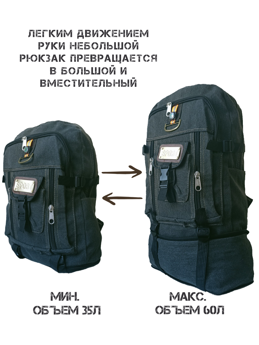Отзывы на Рюкзак спортивный, походный, повседневный, городской, уличный, 40-50л, 700 грамм, унисекс, цвет черный.