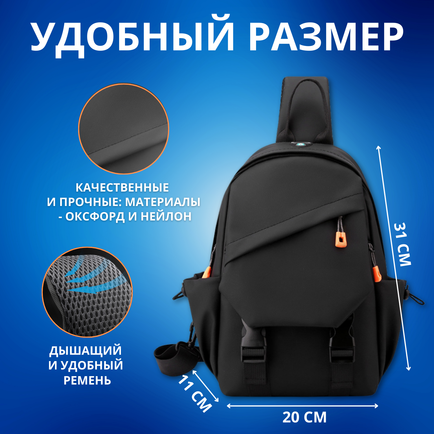 Рюкзак мужской, городской, одно-лямочный , слинг, цвет черный информация: