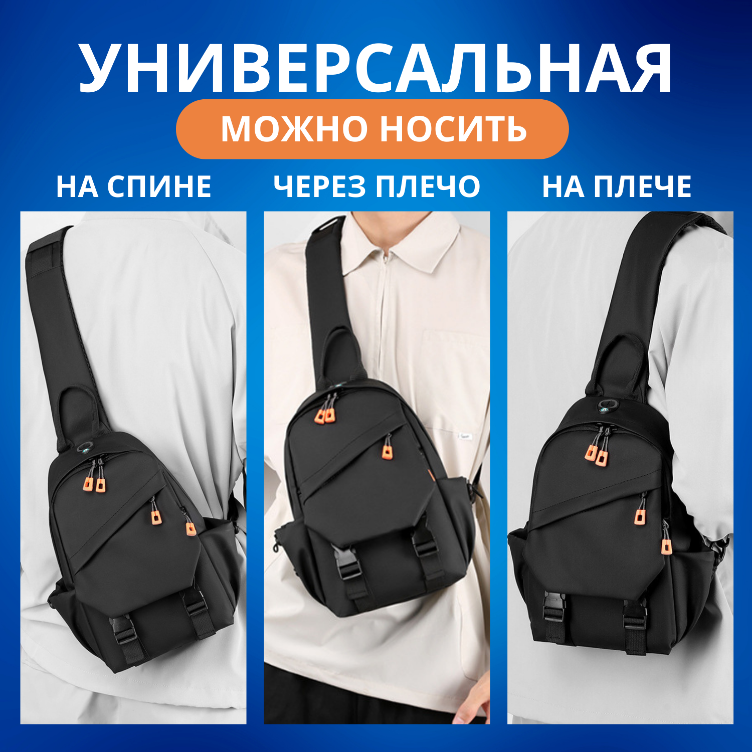 10 цен на Рюкзак мужской, городской, одно-лямочный , слинг, цвет черный