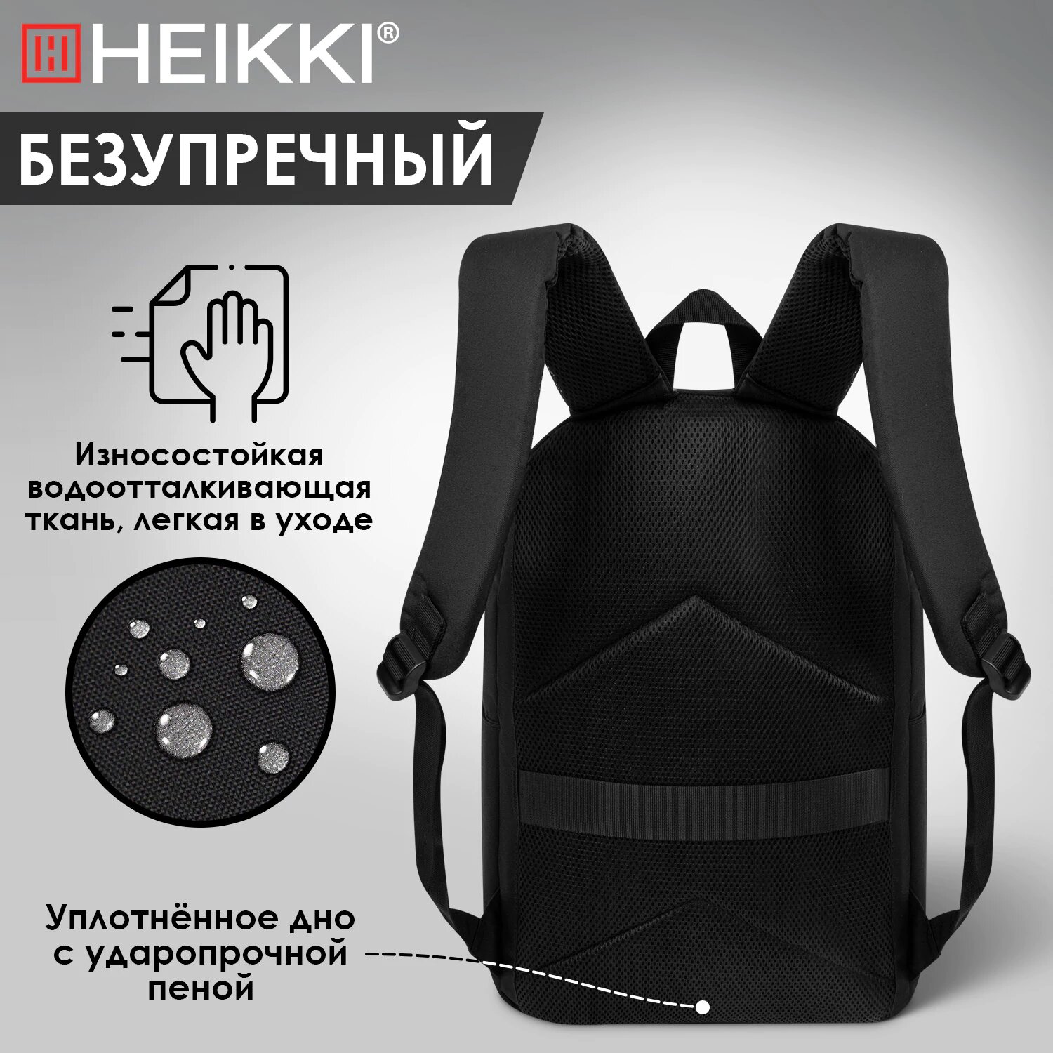 10 цен на Рюкзак женский мужской, школьный спортивный городской, для подростка черный с отделением для ноутбука, USB-порт, 44х31х14 см, Heikki Active, 272560