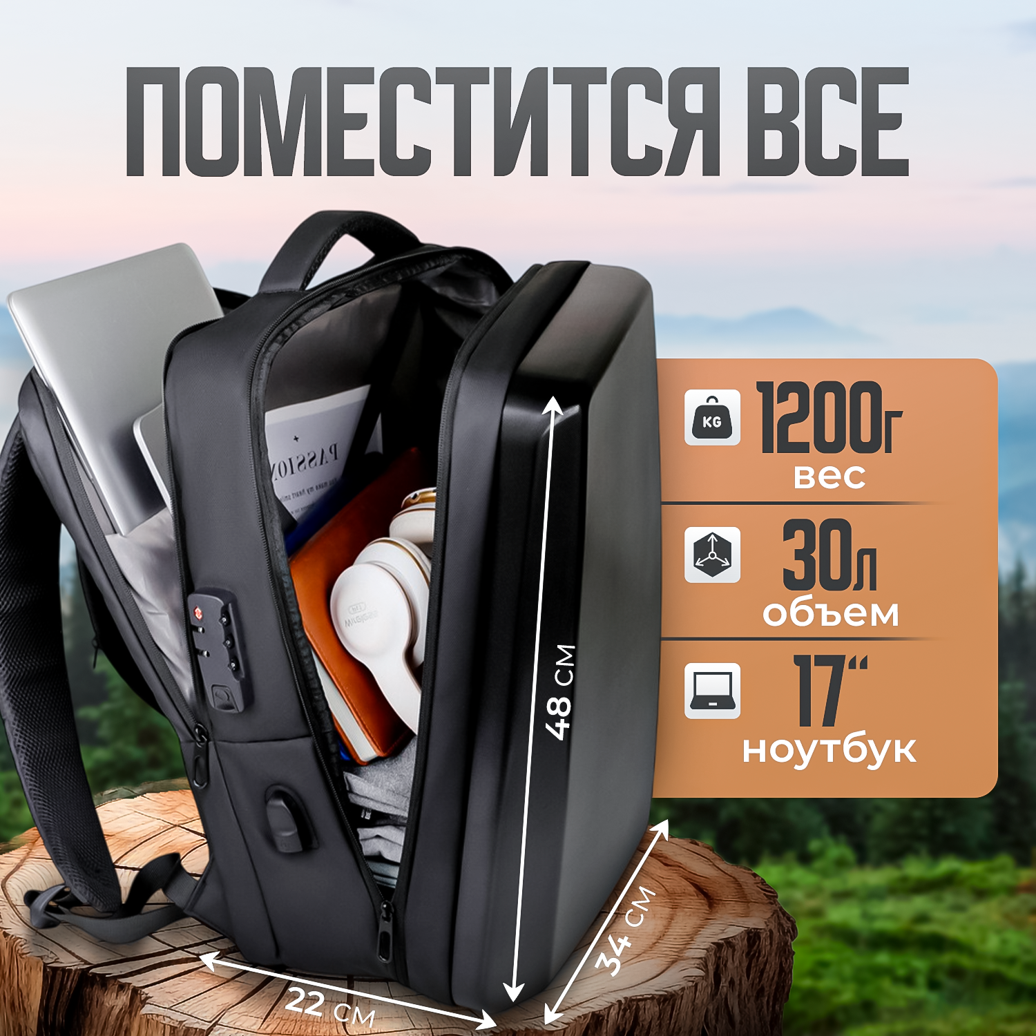 Рюкзак мужской городской дорожный большой для ноутбука 17" водонепроницаемый тканевый с USB зарядкой подростковый информация: