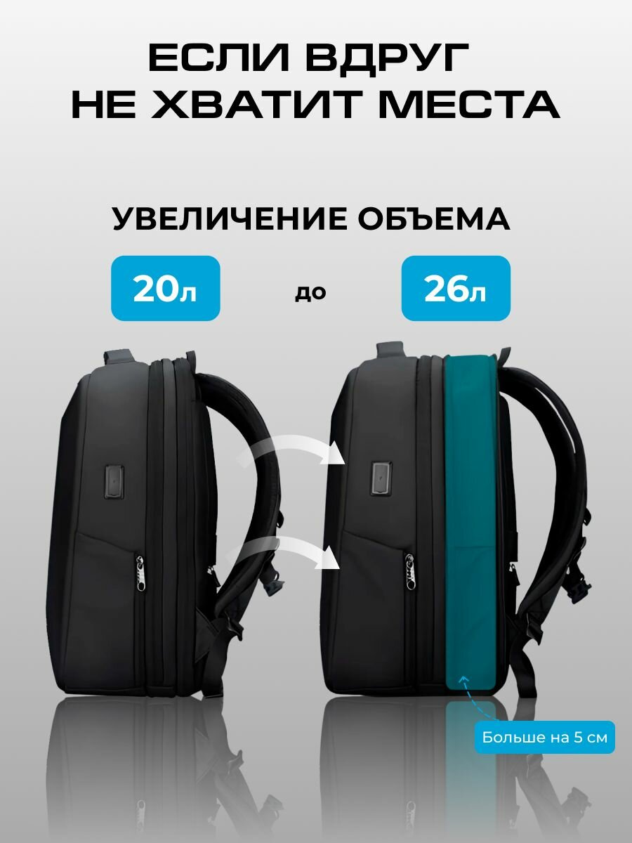 Рюкзак мужской городской Mark Ryden MR9405SJ для ноутбука 15.6", твердым корпус, увеличение объема 20-26л, кодовый замок информация: