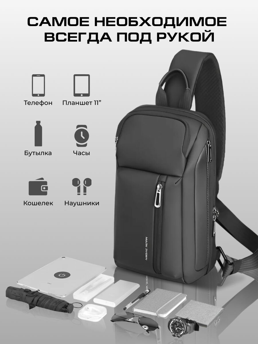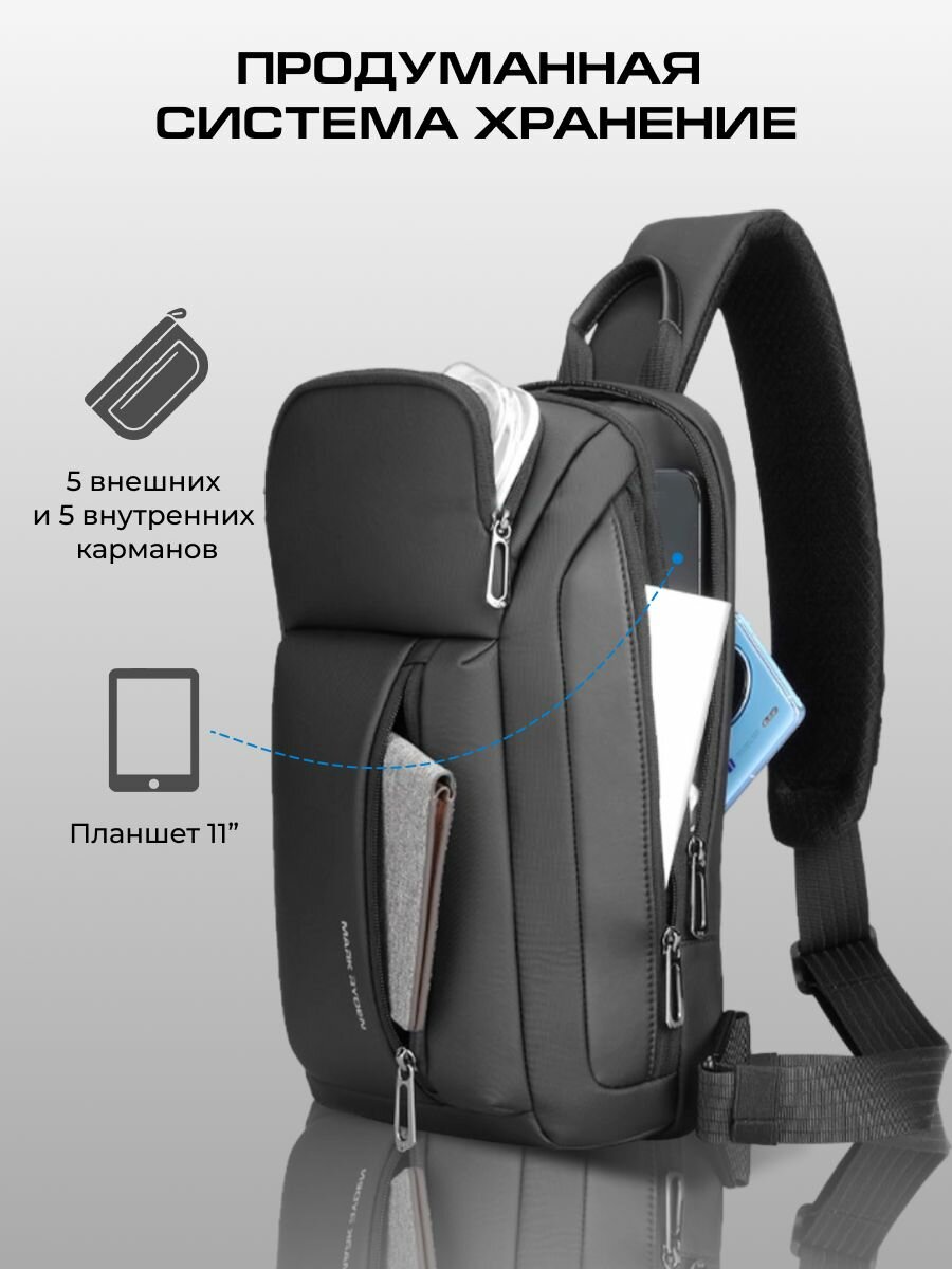 Рюкзак на одно плечо мужской городской MARK RYDEN MR7808, объем 6л. Рюкзак однолямочный, через плечо для студентов информация:
