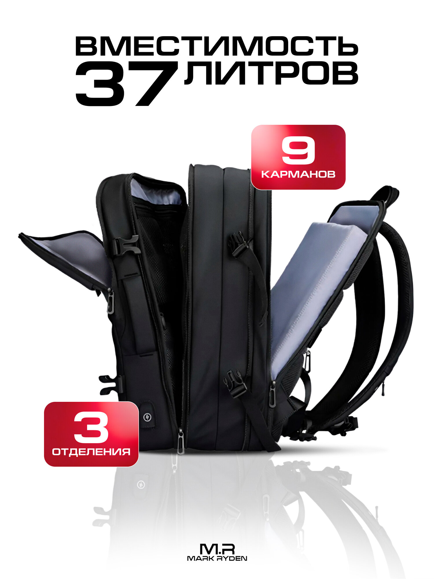 Отзывы на Рюкзак мужской городской с увеличением объема 22-37 л Mark Ryden MR8057Y, Черный дорожный рюкзак для ноутбука 17,3 большой с USB зарядкой , ручная кладь