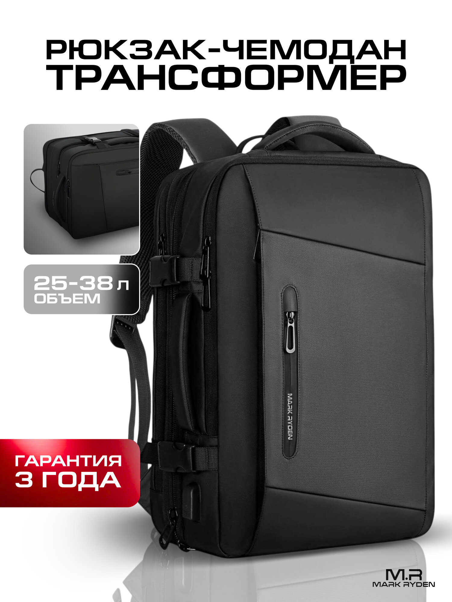 Отзывы на Рюкзак мужской городской Mark Ryden MR9299_KR, ноутбук 17,3", увеличение объема 38л, повседневный, дорожный ручная кладь