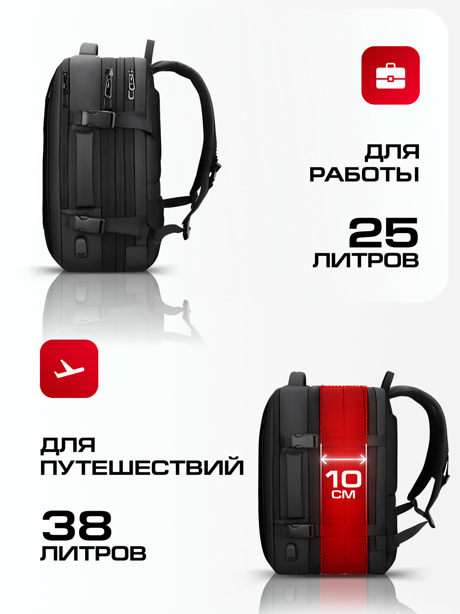 Рюкзак мужской городской с увеличением объема 22-37 л Mark Ryden MR8057Y, Черный дорожный рюкзак для ноутбука 17,3 большой с USB зарядкой , ручная кладь 6 813 ₽