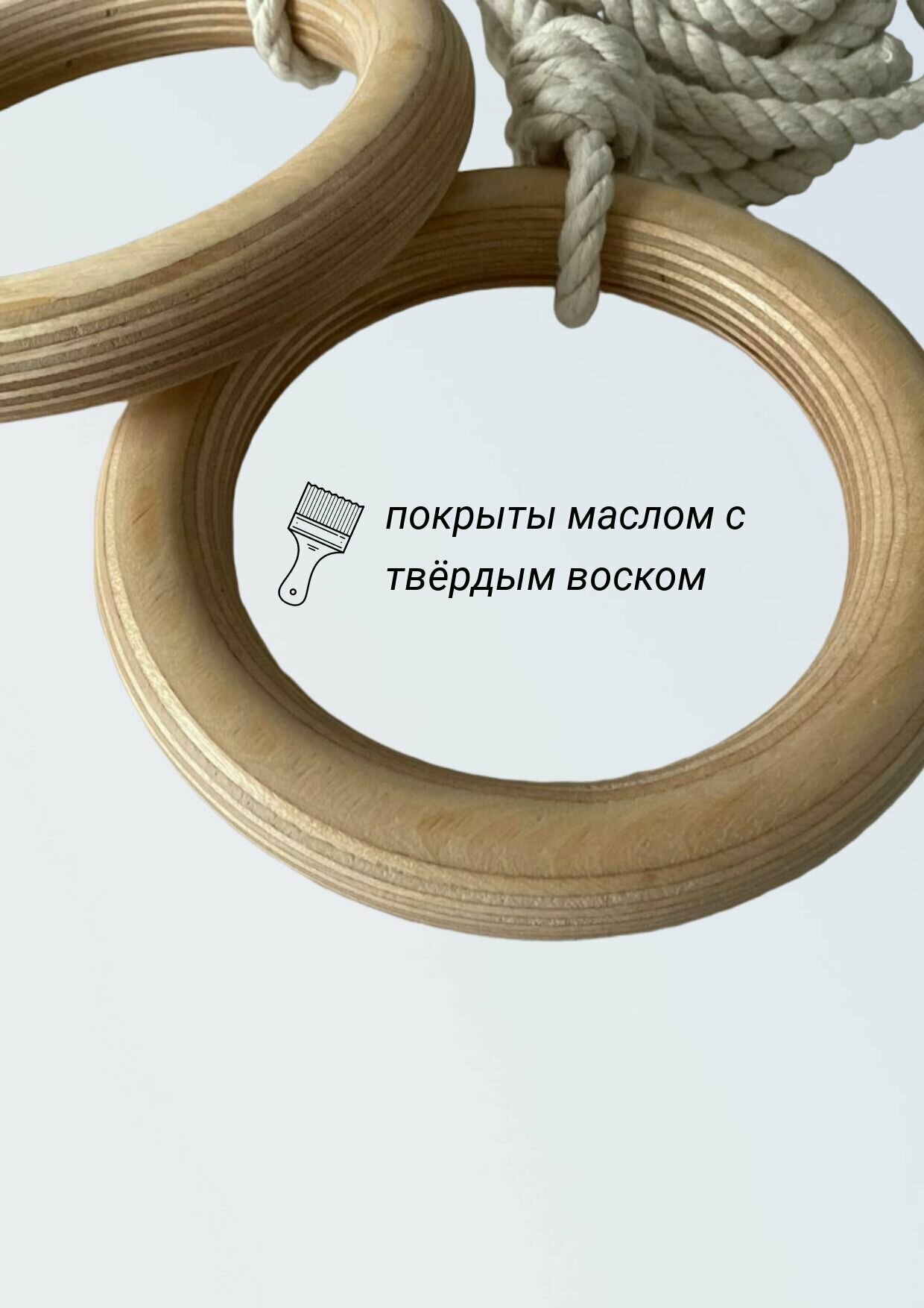 Кольца гимнастические деревянные 165 мм на хлопковых канатах (2 м) для детей информация: