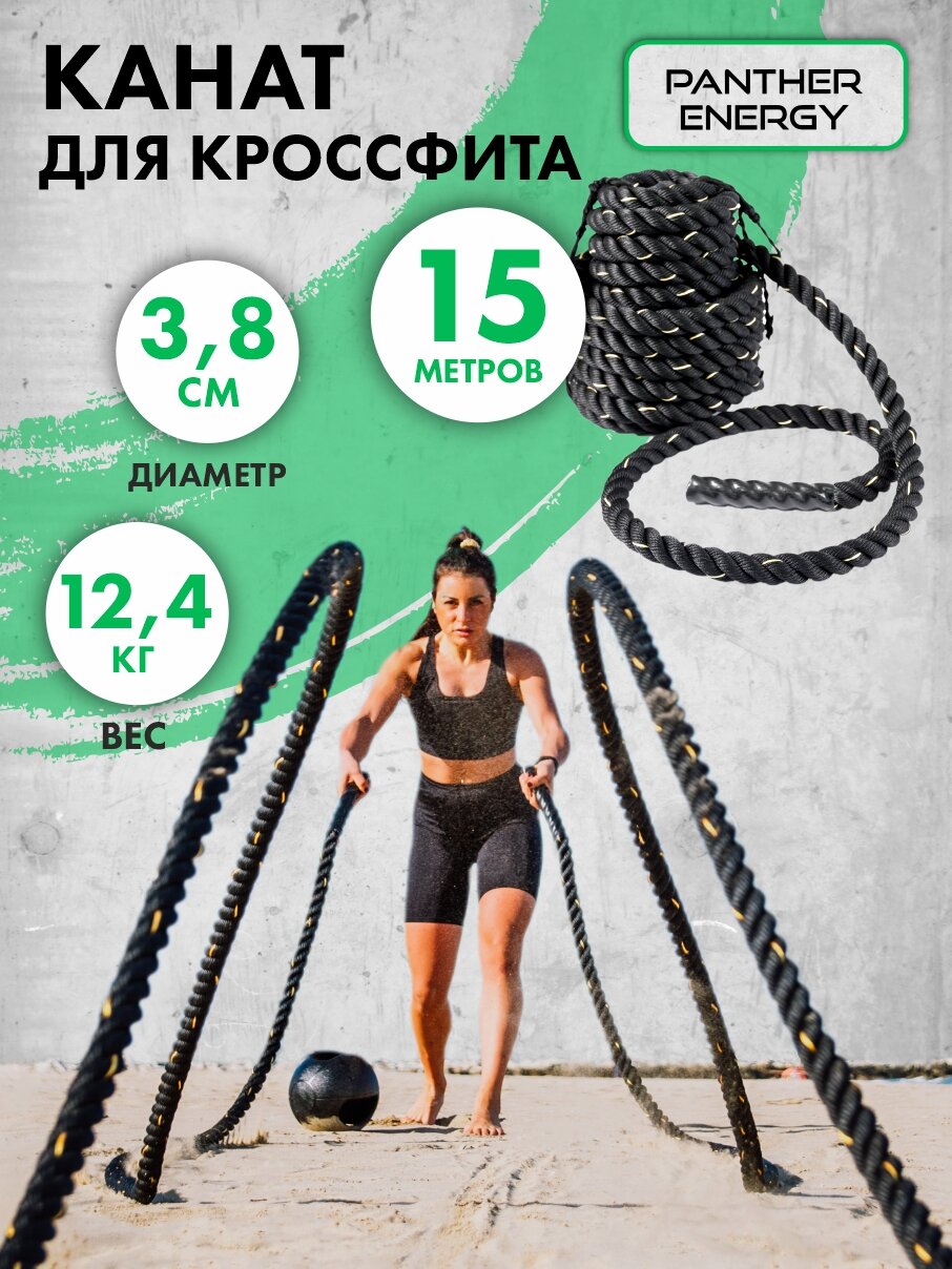 Канат тренировочный для кроссфита (15 метров, 38 мм) / канат спортивный для перетягивания информация: