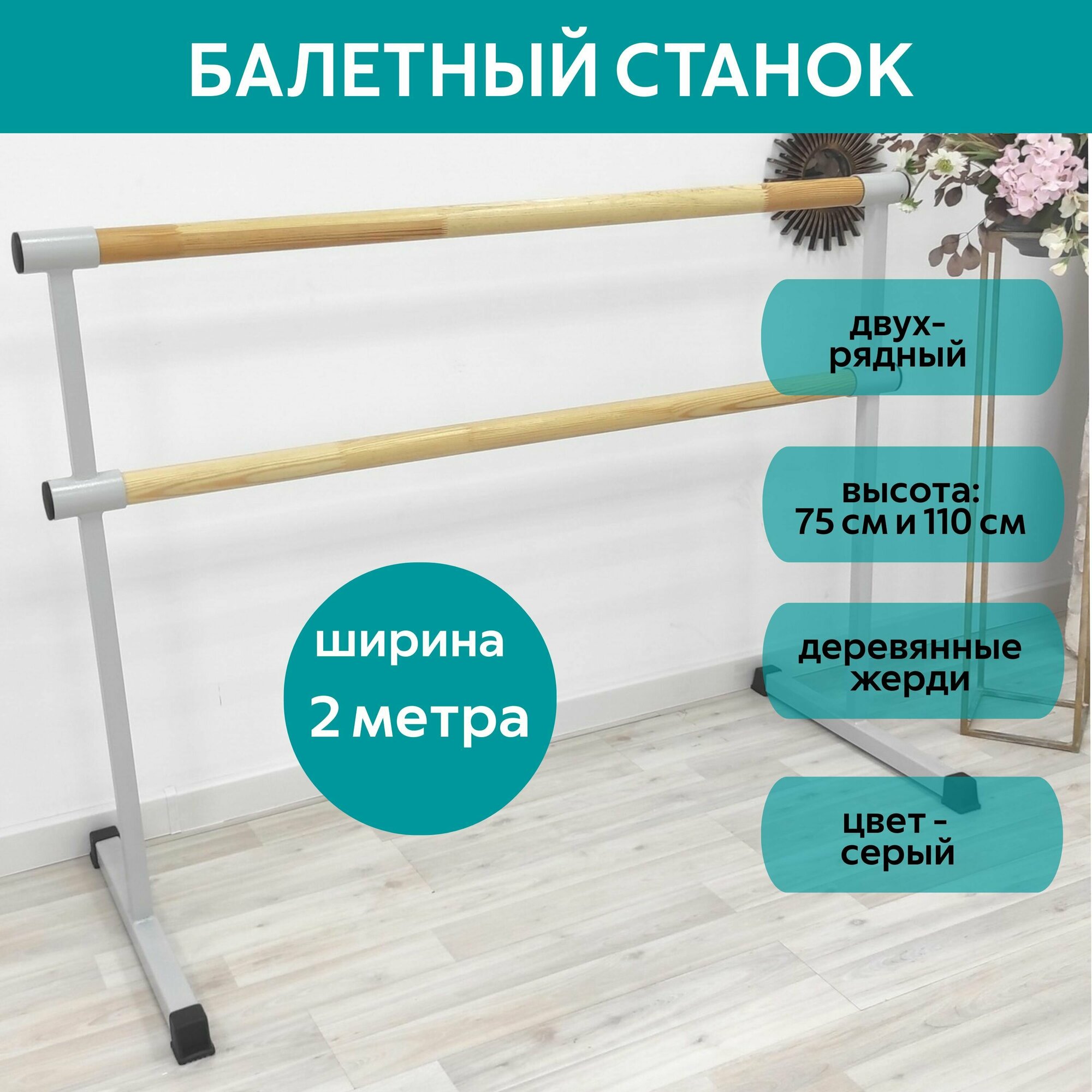 Станок балетный для хореографии FLAGMAN, серый, мобильный, переносной, разборный, с длиной жерди 2 метра, двухрядный информация:
