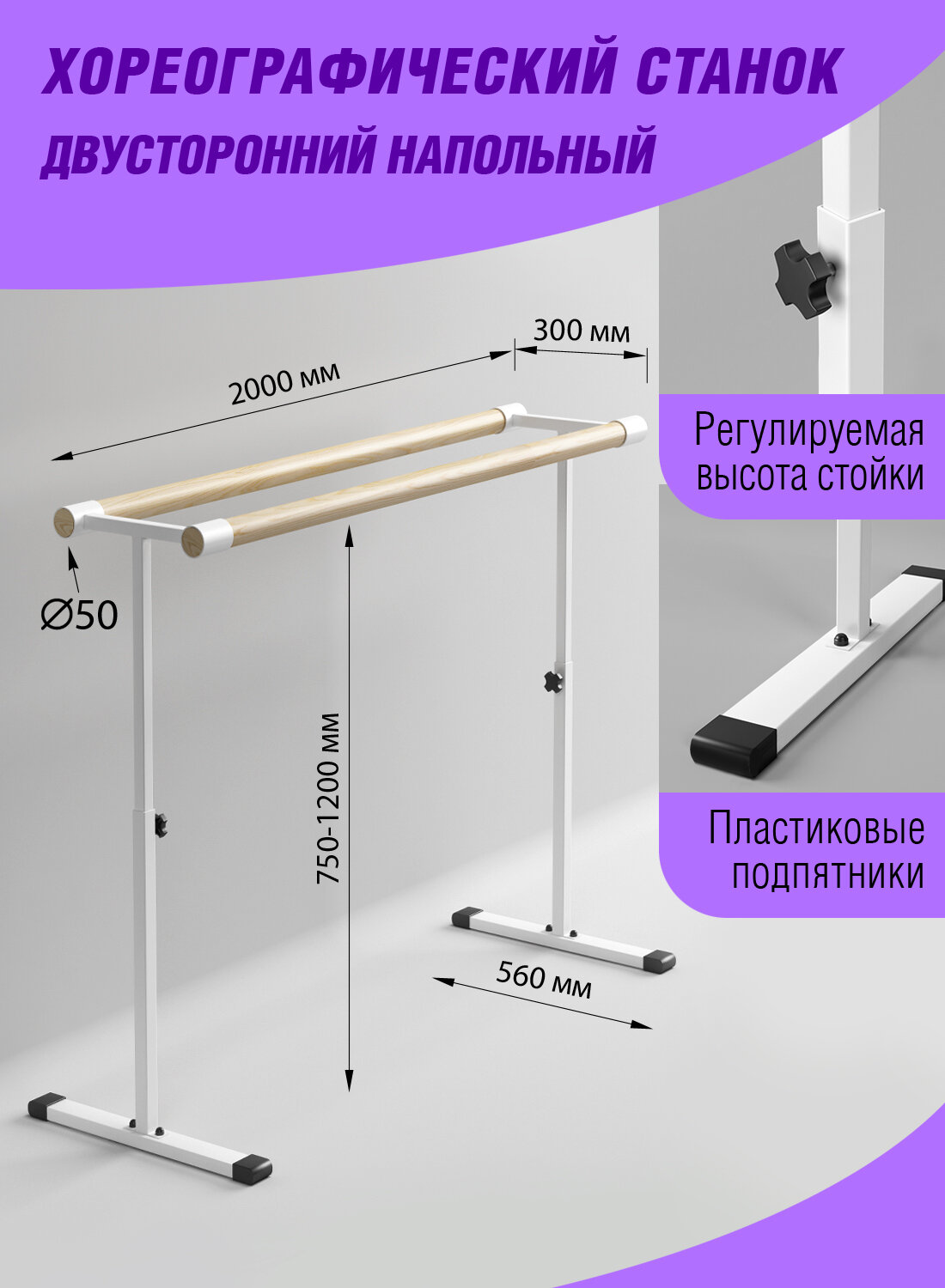 Хореографический станок двухсторонний белый, L-200 информация: