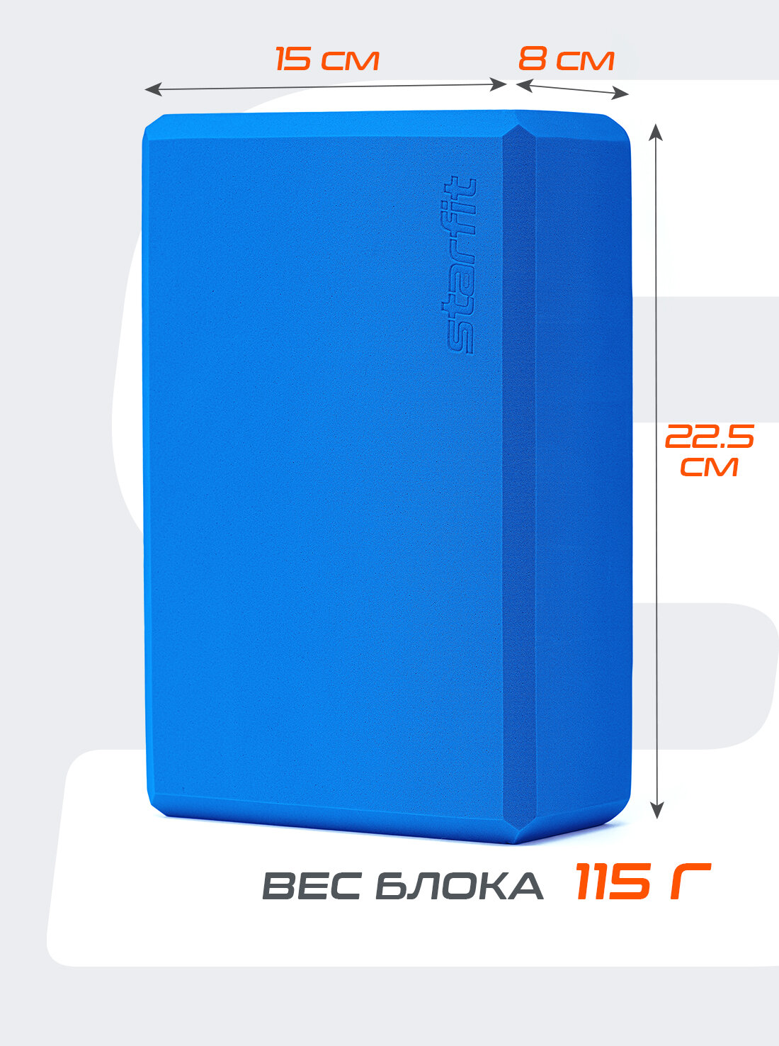 Блоки для йоги и фитнеса STARFIT YB-200 EVA 22,5х8х15 цвет синий пара информация:
