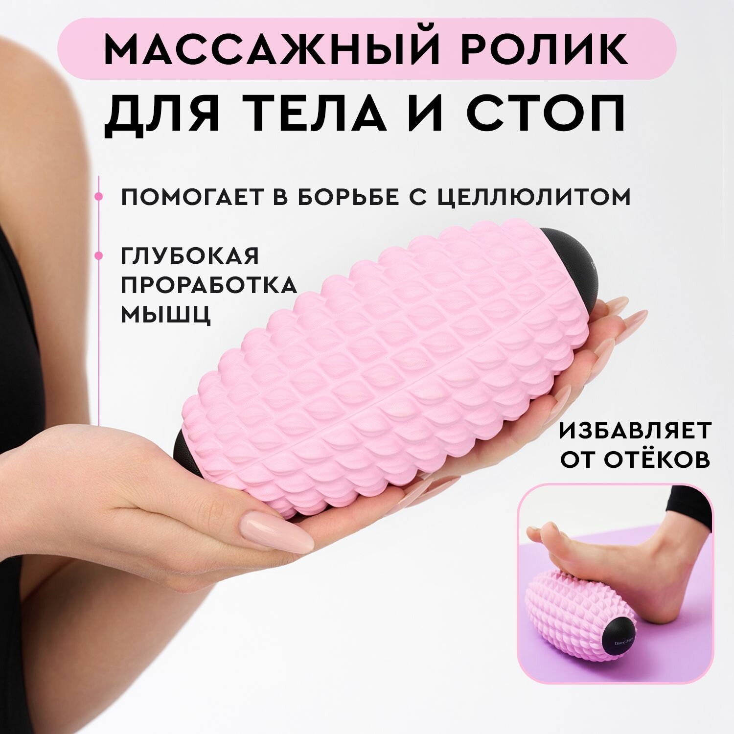 Ролик массажный для стоп и тела йоги, фитнеса, пилатеса и МФР Эллипсоид розовый, Dare To Dream, мяч для МФР информация: