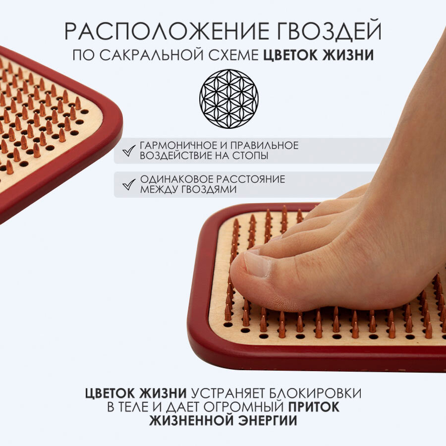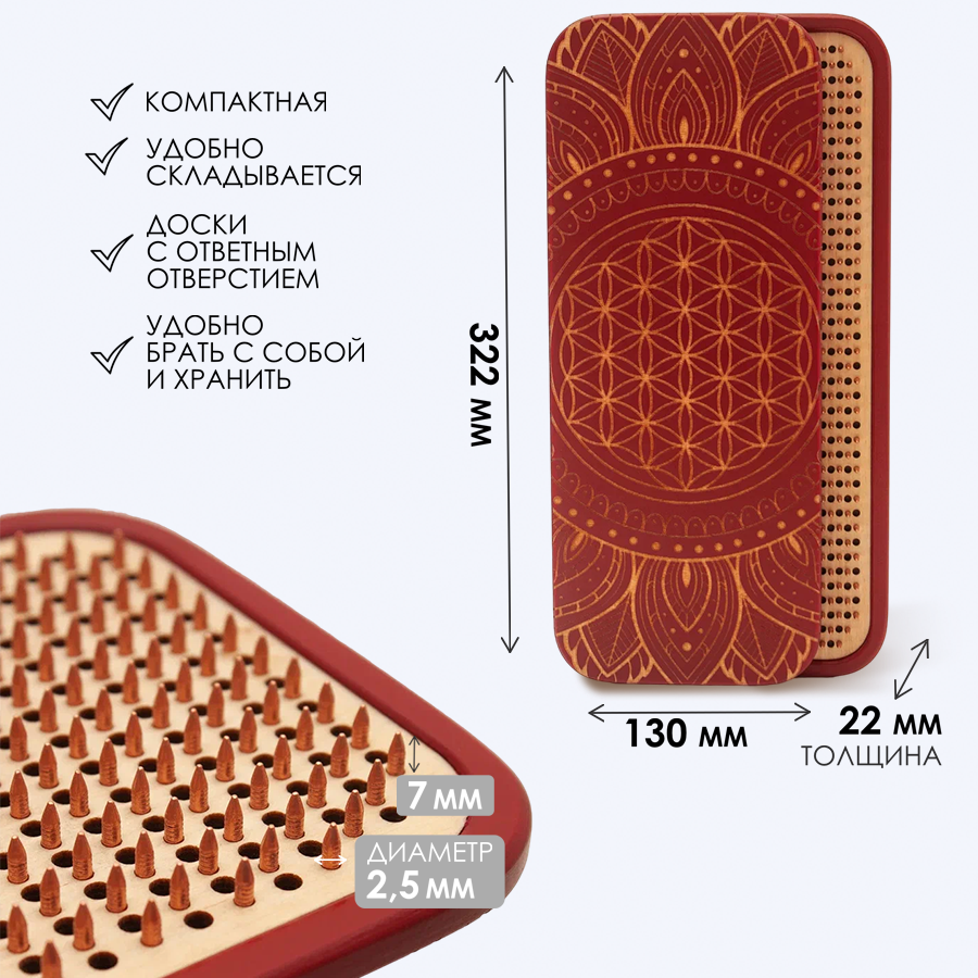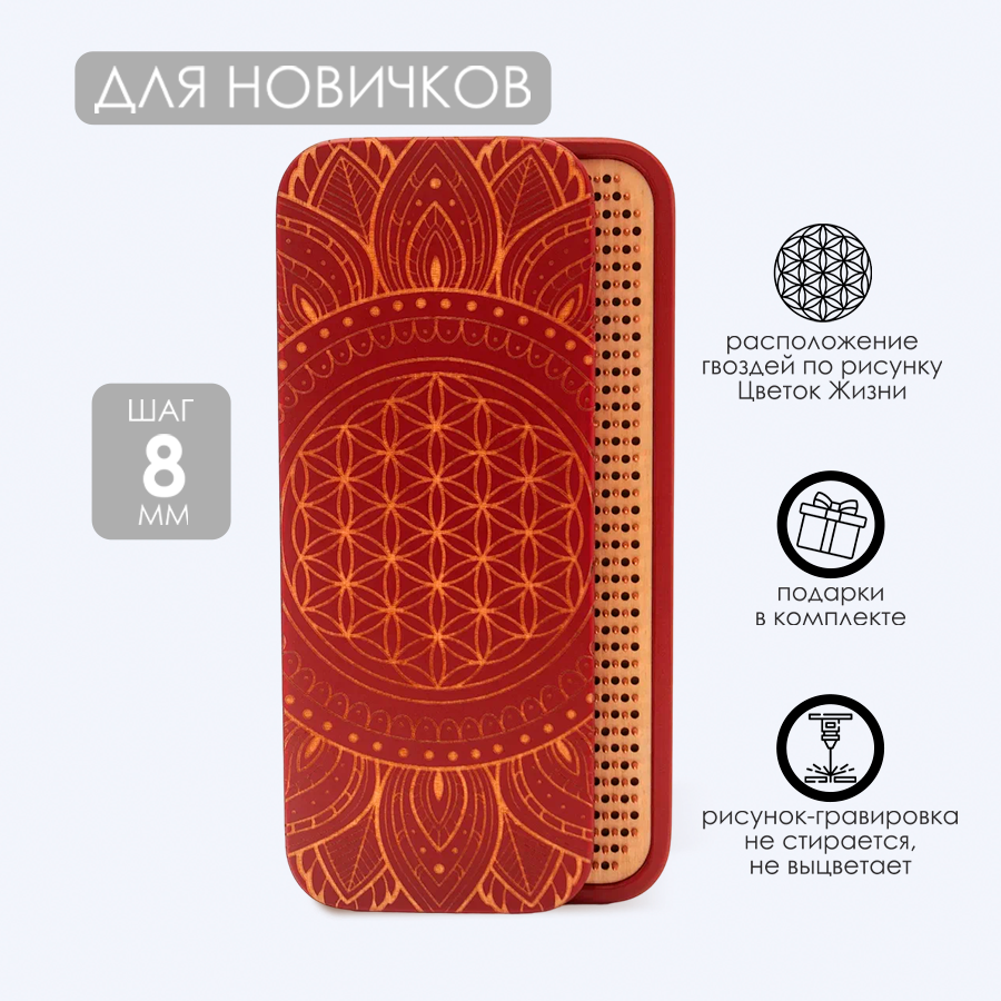 Доска Садху / Доска с гвоздями / Доска для Йоги / Дерево - 8 / шаг 10мм
