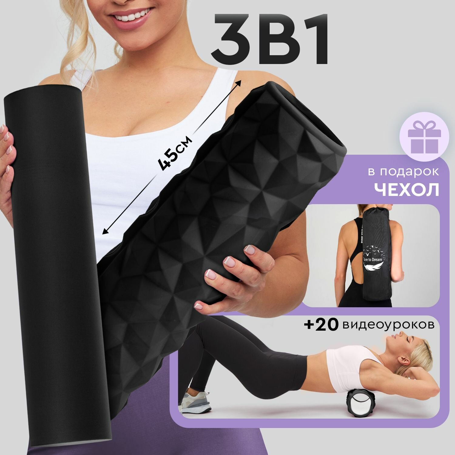 10 цен на Массажные ролики 45 см 2в1 для йоги, пилатеса и МФР, черный Dare To Dream. Ролик массажный, ролл для МФР, валик для спины, МФР ролл