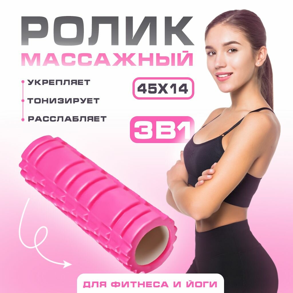 10 цен на МФР ролик массажный, спортивный валик для спины, для фитнеса, йоги, пилатеса, розовый