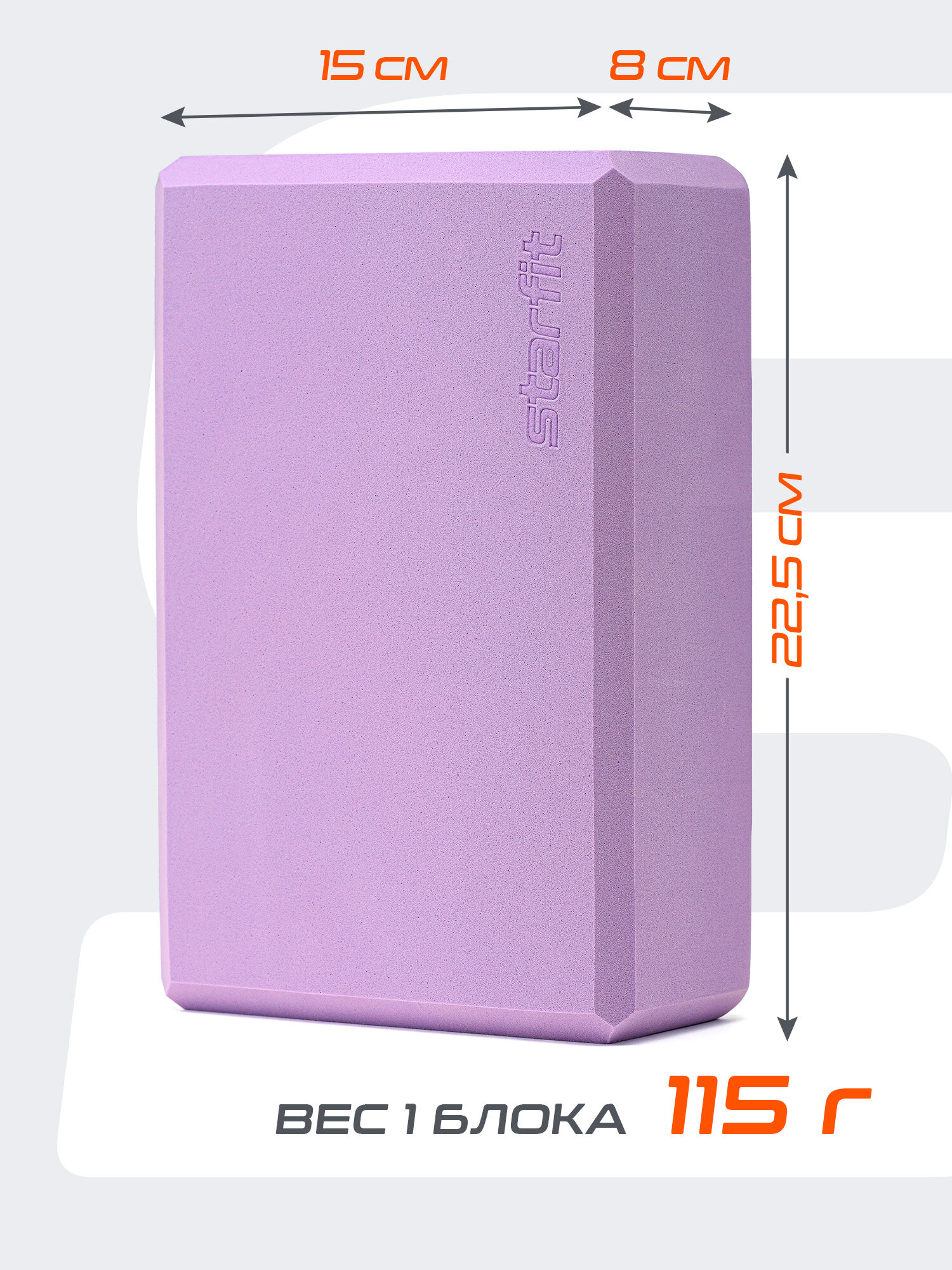 Блок для йоги STARFIT YB-200 EVA, 8 см, 115 гр, 22,5х15 см, цвет светло-фиолетовый, 2 шт информация: