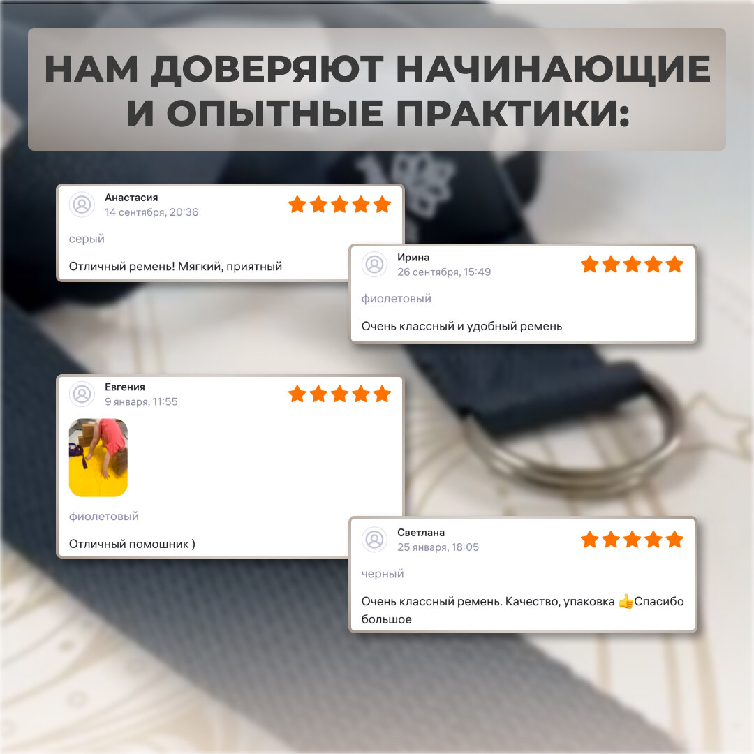 Отзывы на Ремень тренировочный для йоги растяжки фитнеса хлопковый Арт Йогаматик, серый