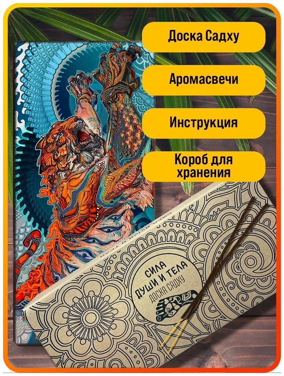 Отзывы на Доска Садху / Доска с гвоздями / Доска для Йоги / Животные тигр абстракция Азия - 1060 / шаг 10мм