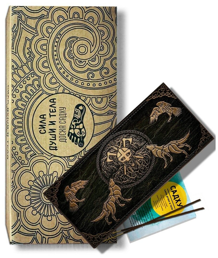Доска Садху / Доска с гвоздями / Доска для Йоги / растения надпись - 1395, черная