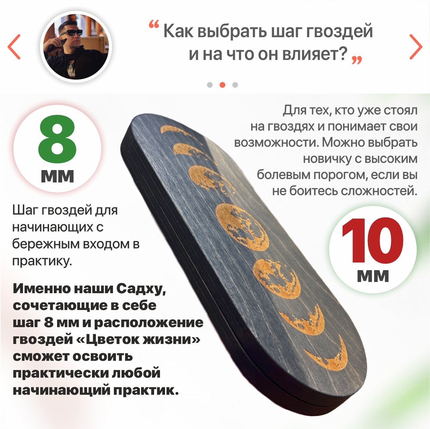 Доска садху с гвоздями для йоги / 10 мм для начинающих и продвинутых / с гравировкой Начало Пути 2 020 ₽