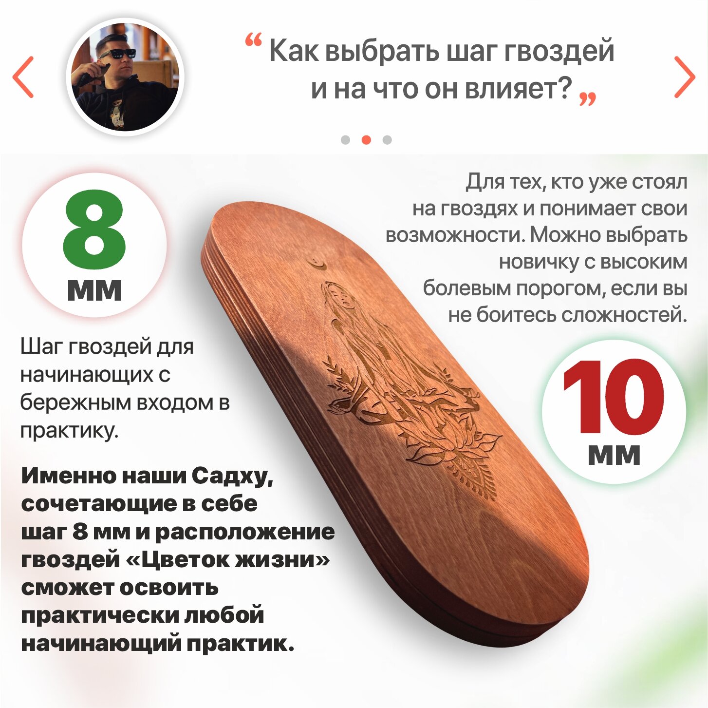 Доска садху с гвоздями для йоги / 10 мм для начинающих и продвинутых / с гравировкой Начало Пути 2 020 ₽