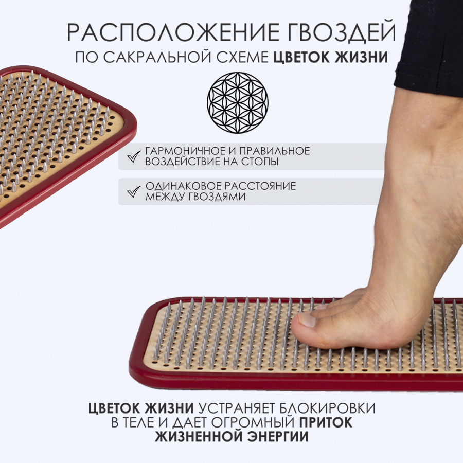 Доска Садху / Доска с гвоздями / Доска для Йоги / растения надпись - 1395, черная