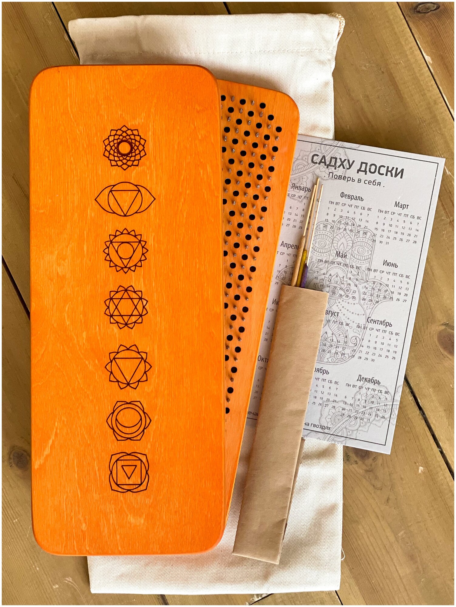 10 цен на Доска Садху / Доска с гвоздями / Доска для йоги / Чакры / Оранжевый / шаг 8 мм