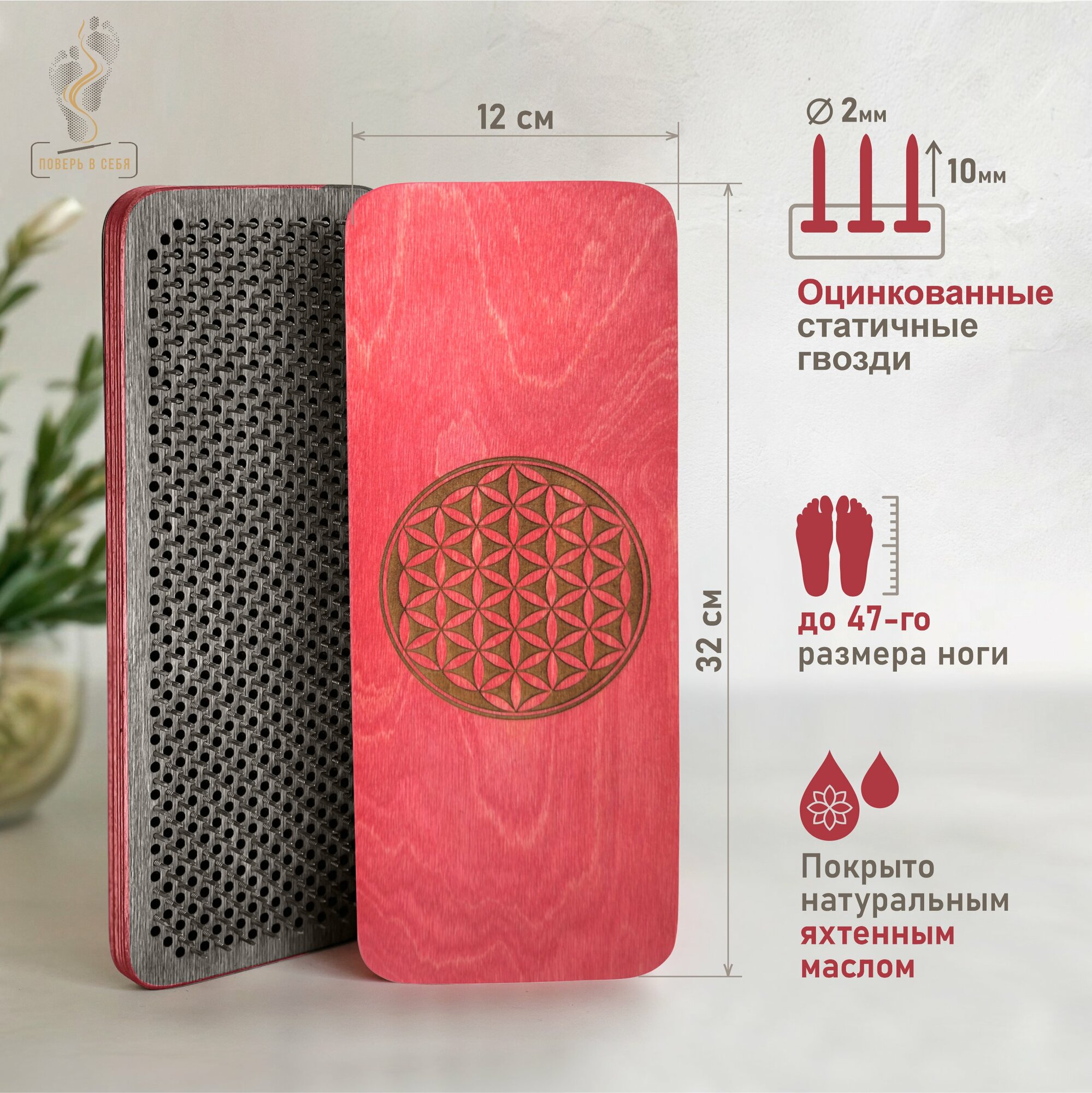 Доска Садху / Доска с гвоздями / Доска для йоги / Цветок жизни / Красный / шаг 8 мм информация: