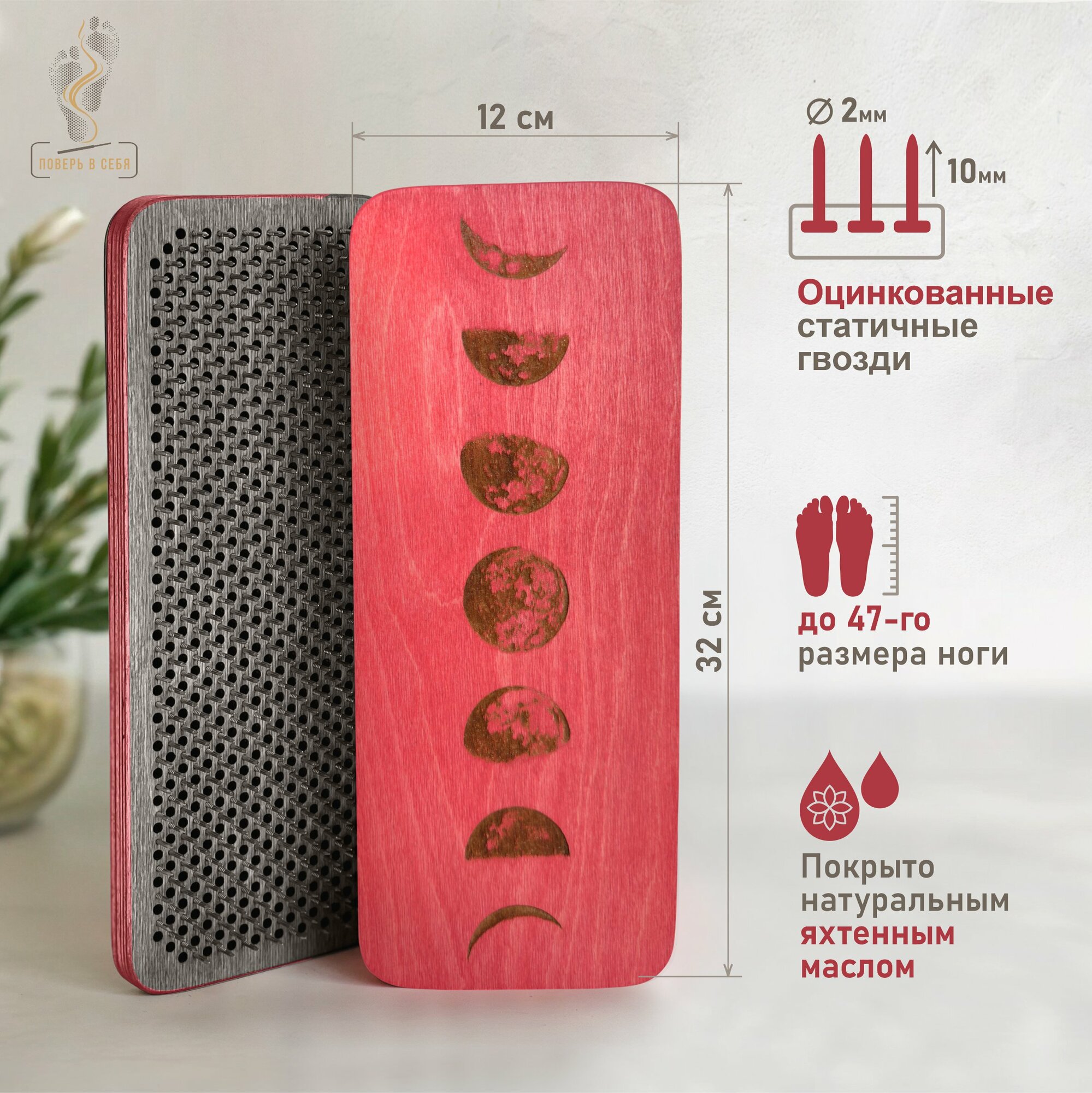 Отзывы на Доска Садху / Доска с гвоздями / Доска для йоги / Луна / Красный / шаг 8 мм