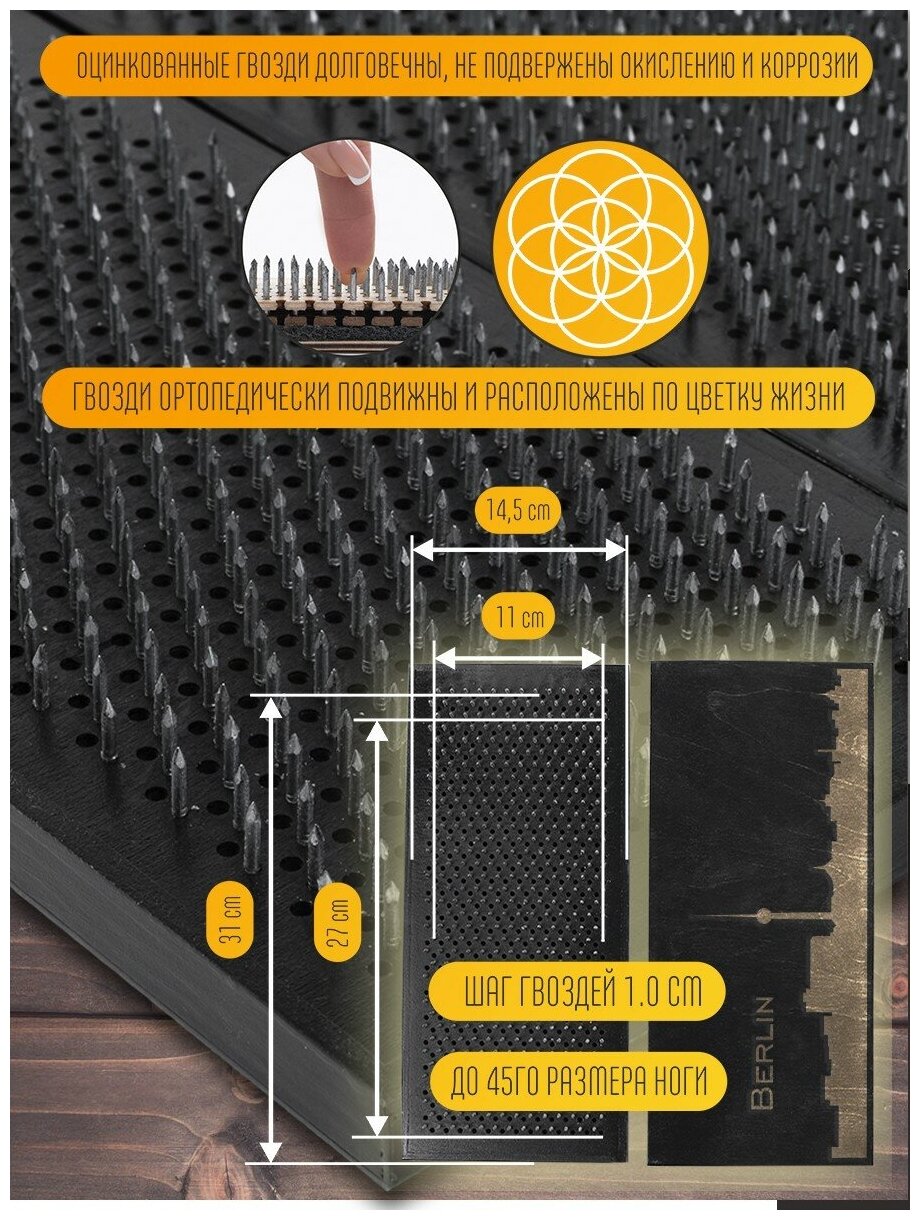 Доска Садху / Доска с гвоздями / Доска для Йоги / города берлин - 1292, черная информация: