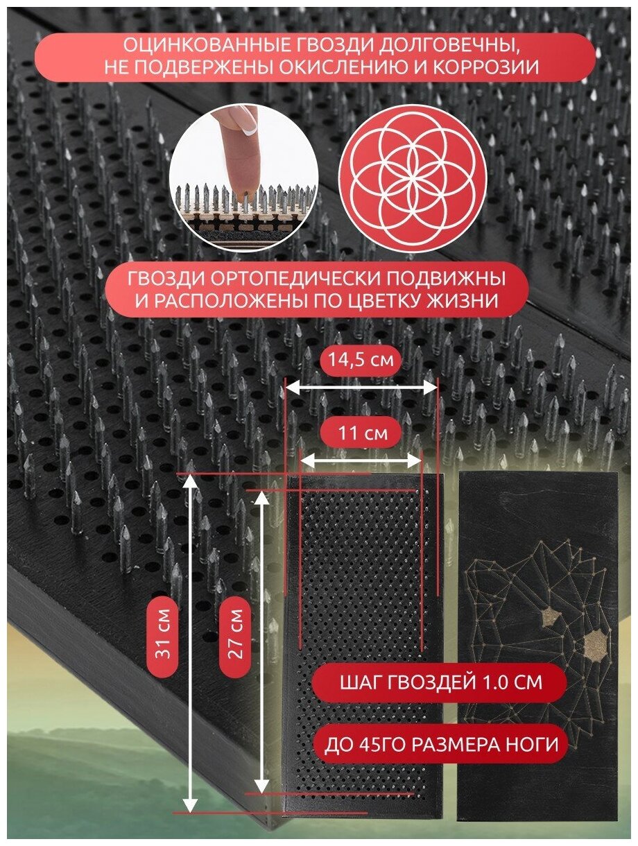 Доска Садху / Доска с гвоздями / Доска для Йоги / растения надпись - 1395, черная
