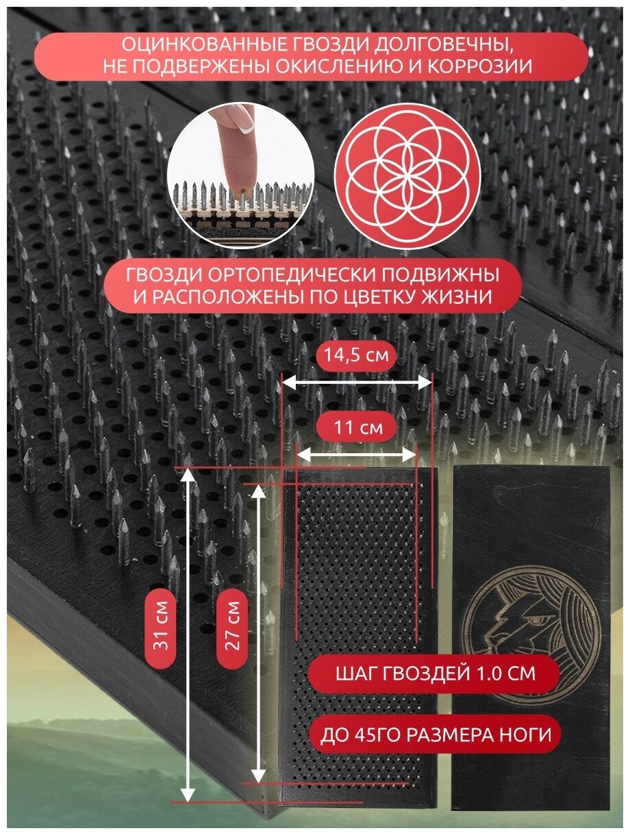 Доска Садху / Доска с гвоздями / Доска для Йоги / растения надпись - 1395, черная