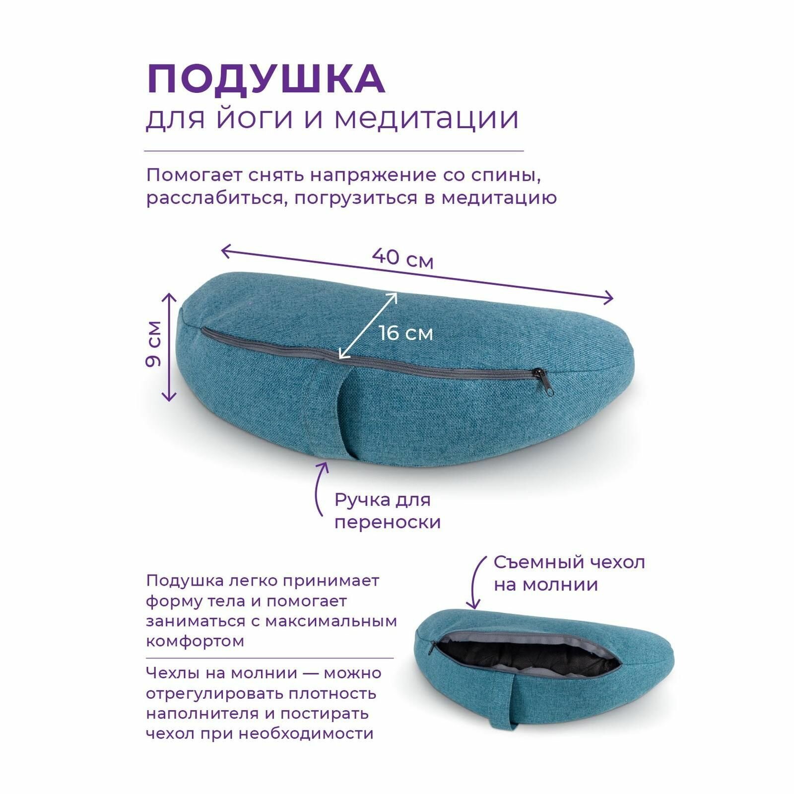 Подушка для йоги и медитации полумесяц INDIGO (гречневая лузга) 40х16см Бирюзовый информация: