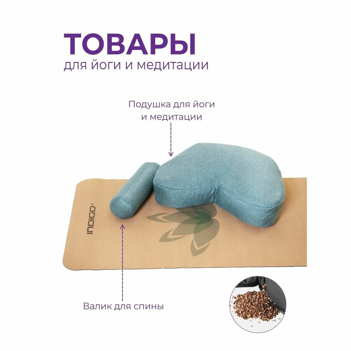 Отзывы на Подушка для йоги и медитации полумесяц INDIGO (гречневая лузга) 40х16см Темно-серый