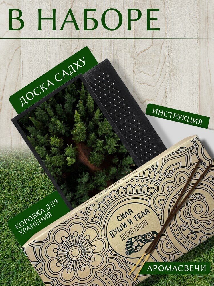Доска Садху / Доска с гвоздями / Доска для Йоги / растения надпись - 1395, черная