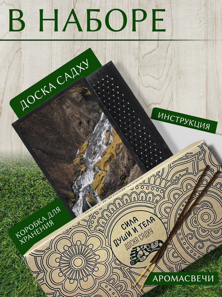 Доска Садху / Доска с гвоздями / Доска для Йоги / растения надпись - 1395, черная