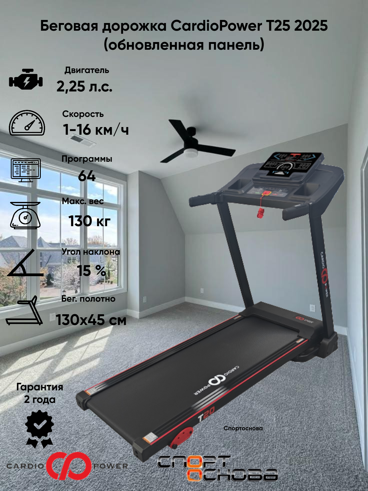 Беговая дорожка CardioPower T25 NEW 2025 (обновленная панель) информация: