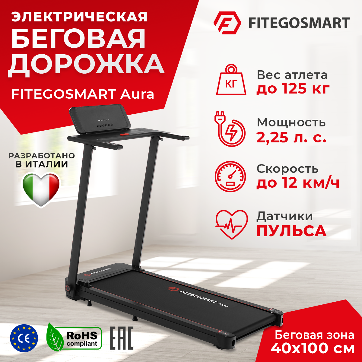 10 цен на Беговая дорожка для дома электрическая Fitegosmart AURA складная, мини, компактная, с поручнем, реабилитационная, для ходьбы, плоская, до 125 кг
