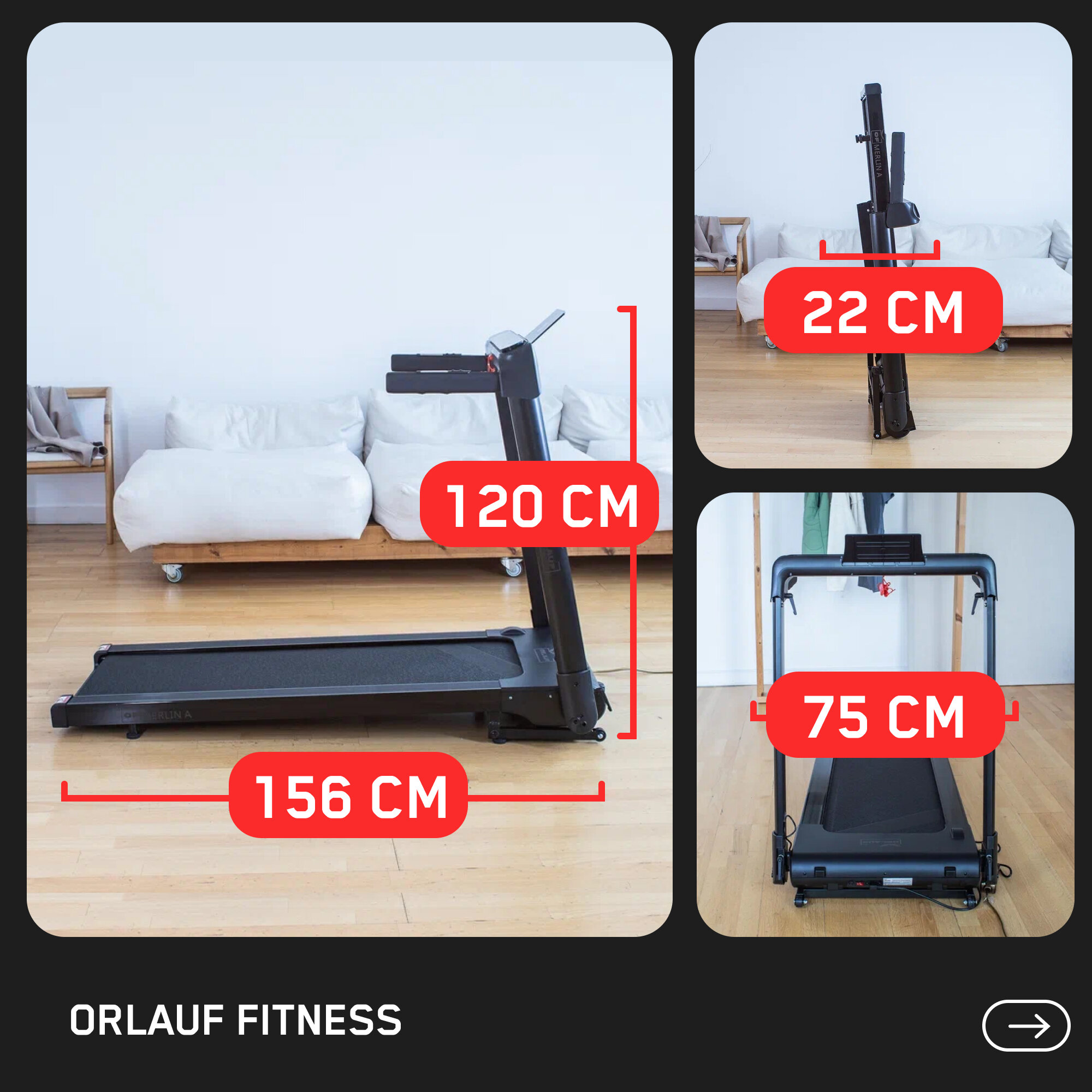 Беговая дорожка для дома электрическая Orlauf Merlin A / Складная / С углом наклона / Компактная, тонкая / До 130кг информация: