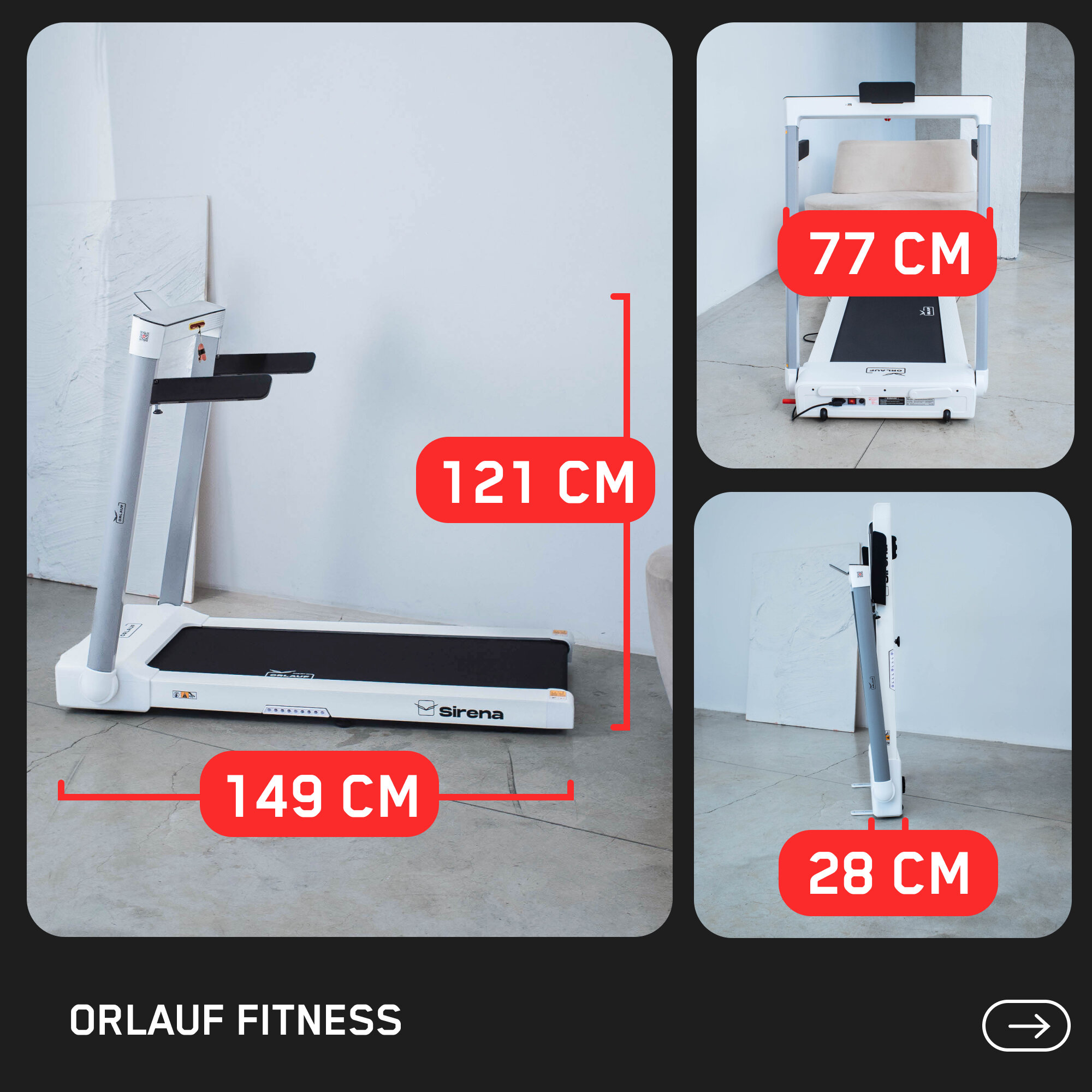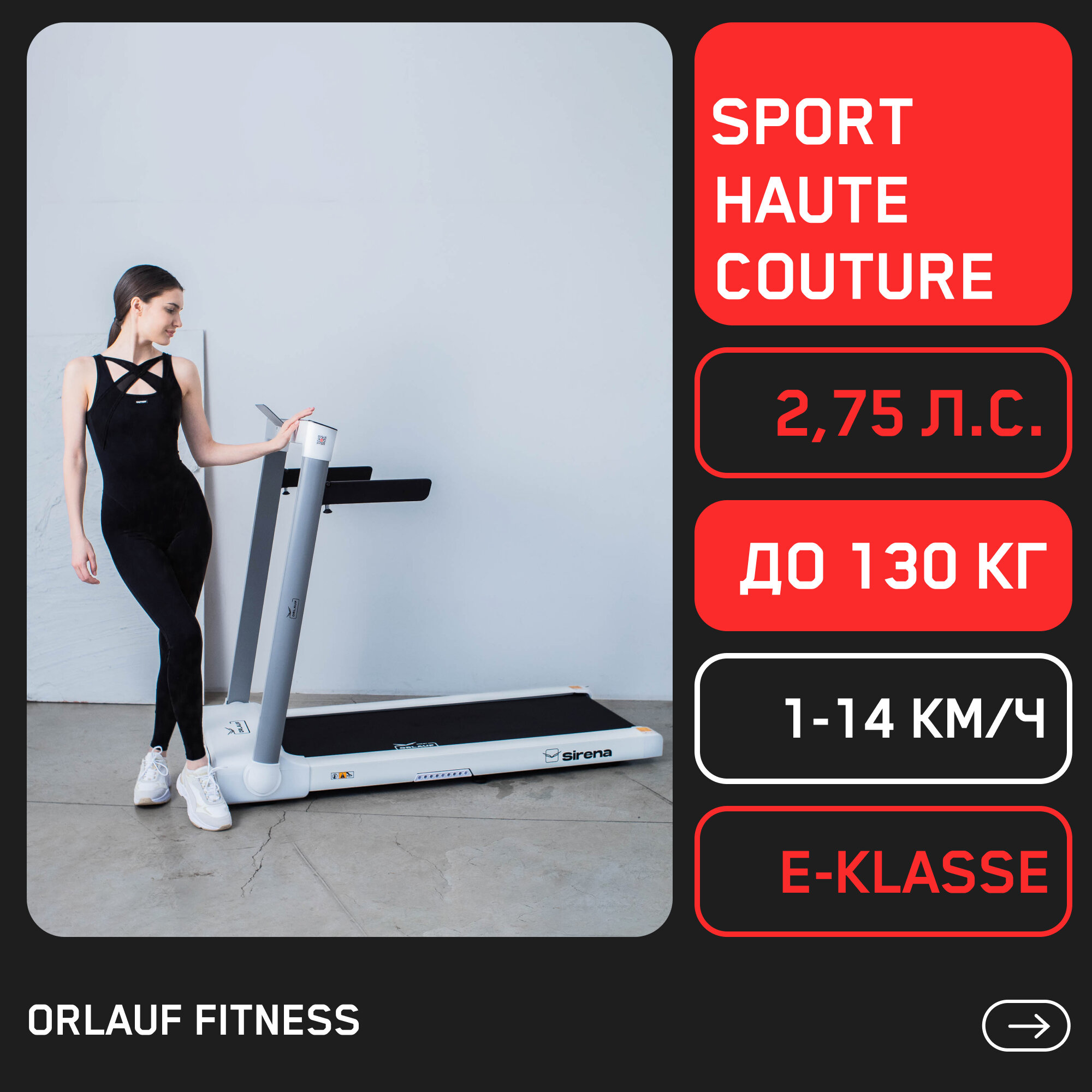 Беговая дорожка для дома электрическая Orlauf Sirena / Складная, компактная, тонкая / До 130кг информация: