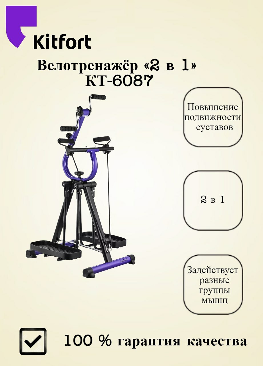 Велотренажер Kitfort КТ-6087, 2 в 1, для дома, механическая система нагрузки, до 120 кг информация:
