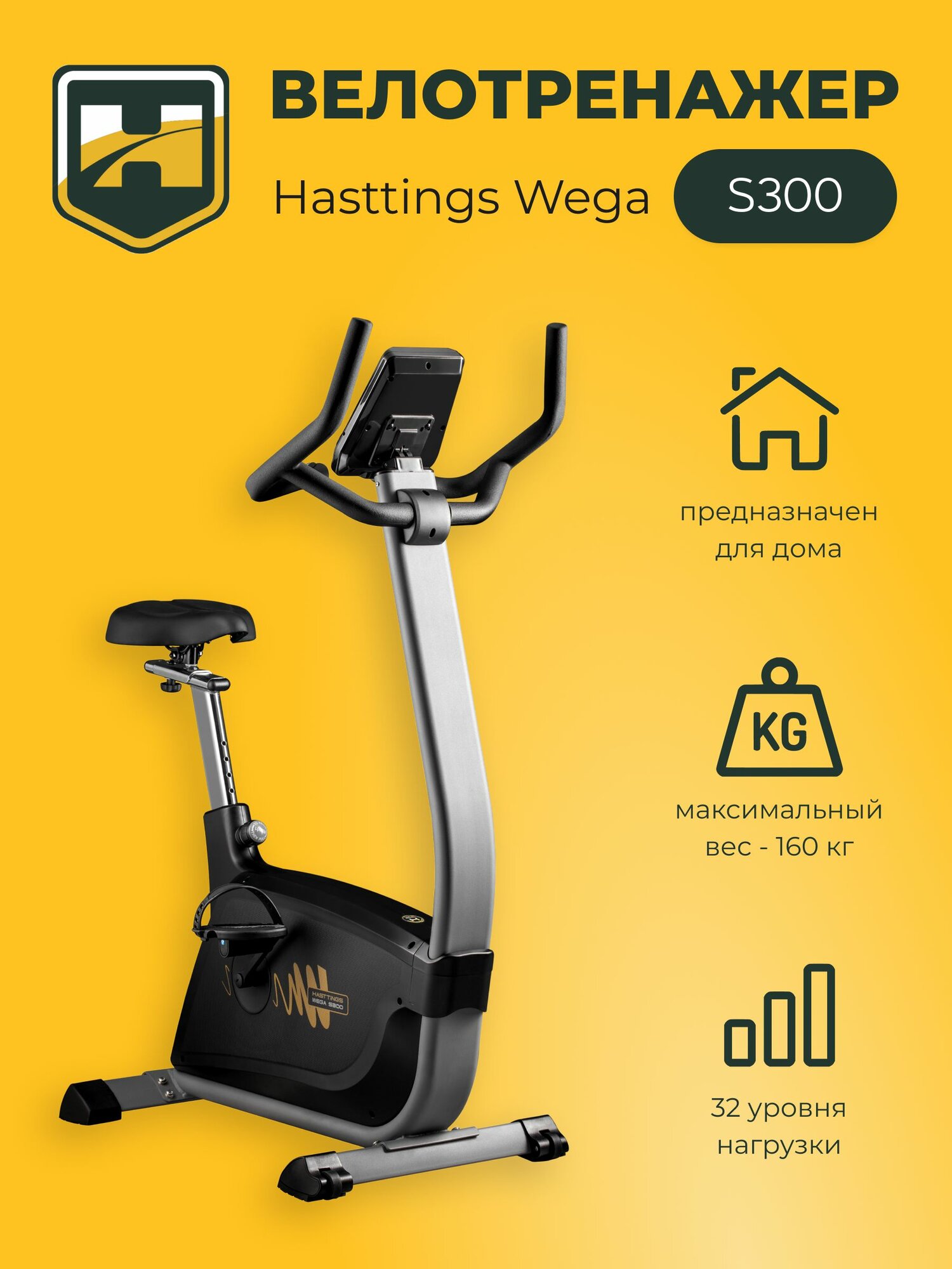 Велотренажер Hasttings "Wega S300 Plus", для дома, электромагнитная система нагрузки, черный информация:
