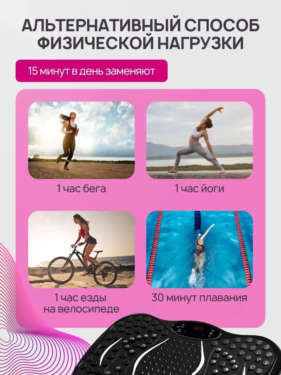 10 цен на Виброплатформа для похудения , тренажер, массажер для ног, 99 скоростей, эспандеры 2 шт, чёрная